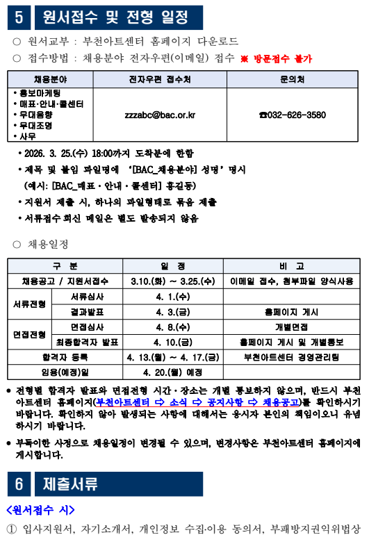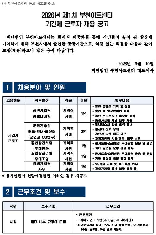 [부천아트센터] 2026년 제1차 부천아트센터 기간제 근로자 채용 공고