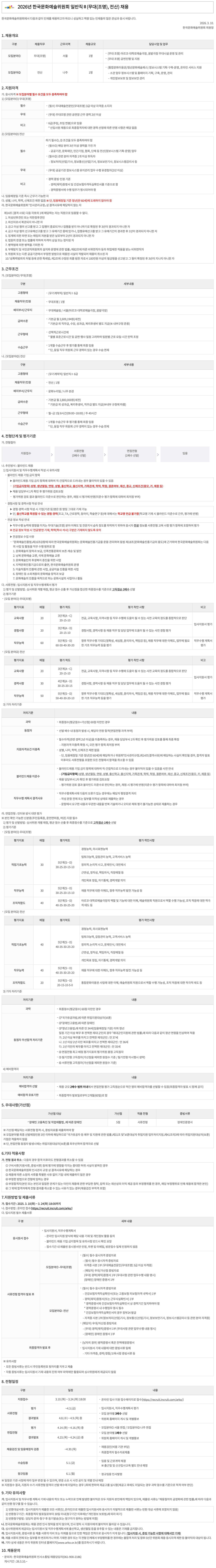 [한국문화예술위원회] 2026년 한국문화예술위원회 일반직Ⅱ(무대(조명)) 채용