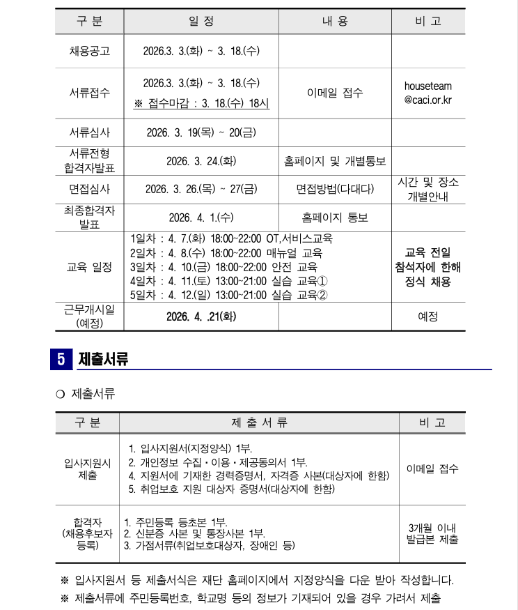 2026년 제5차 직원 채용 공고