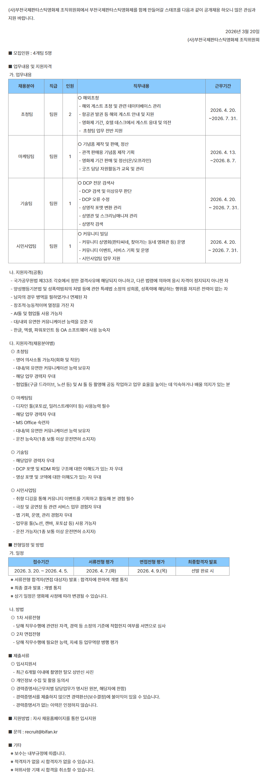 2026년 부산국제영화제 프로그래머(계약직) 채용