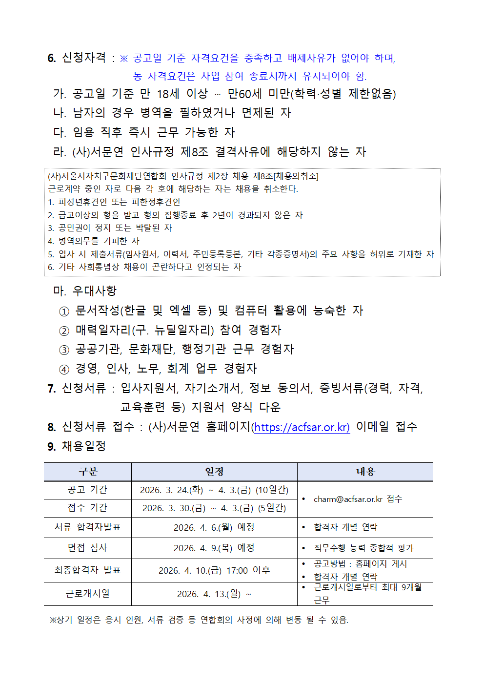 2026년 제3회 마포문화재단 직원 긴급 채용 공고(~04.27.(월) 18:00 한)