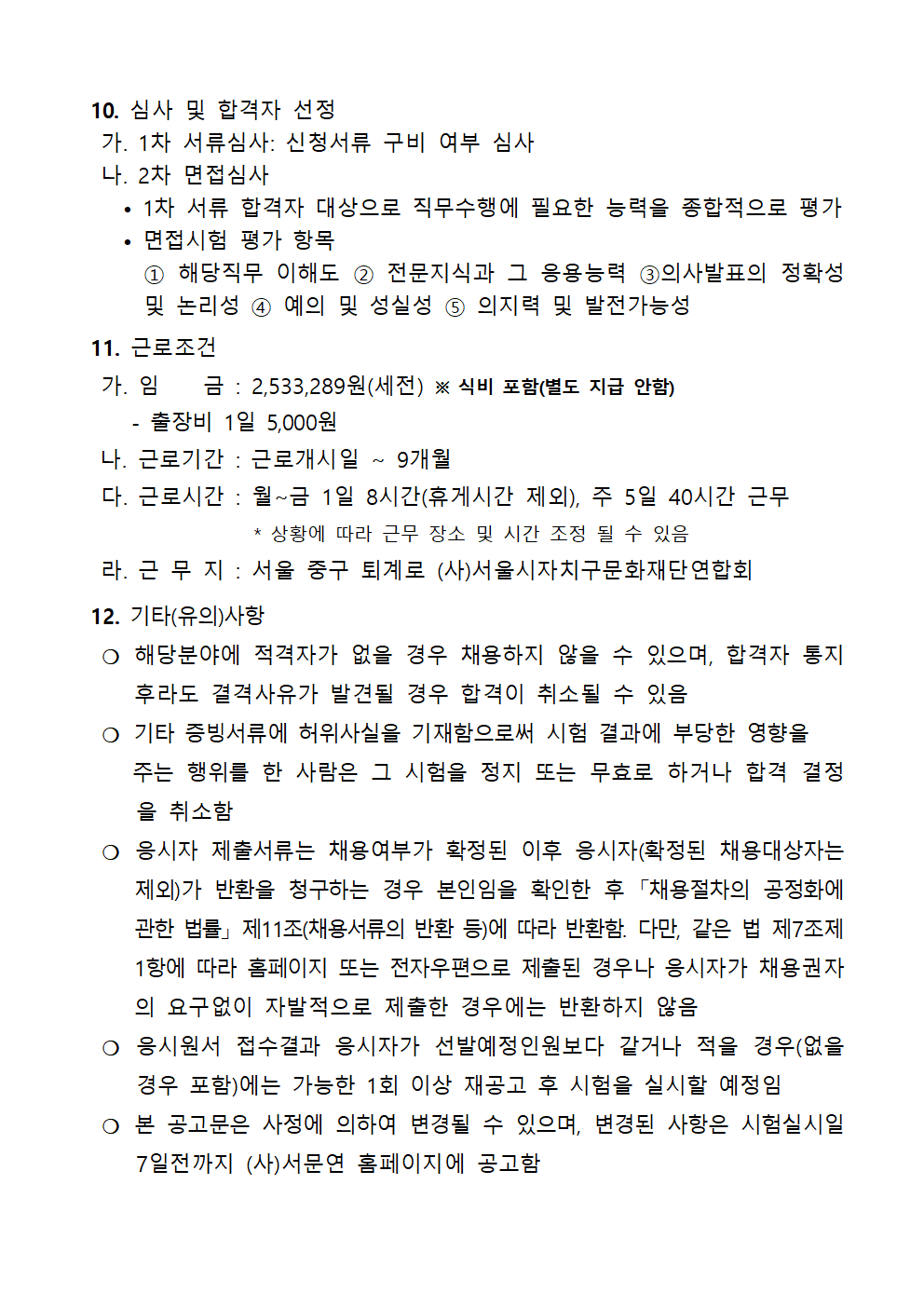 2026년 제1차 종로문화재단 직원 공개모집 공고