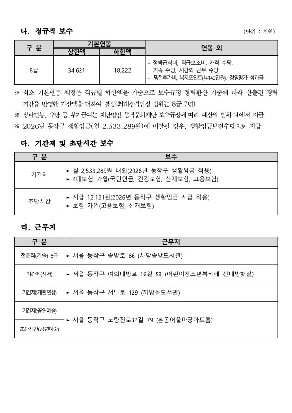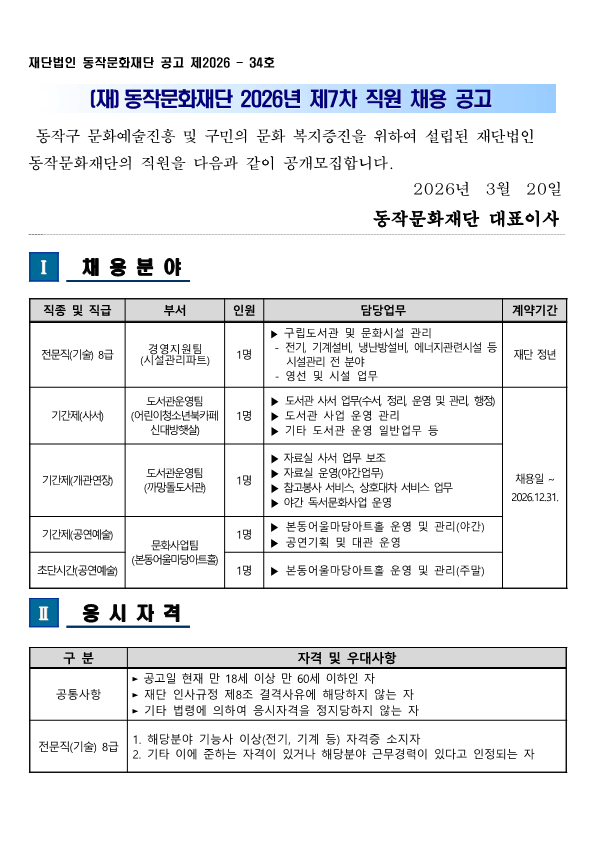 [(재)동작문화재단] 2026년 제7차 직원 채용 공고