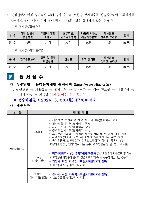 [(재)동대문문화재단] 2026년 제1차 직원 채용 공고