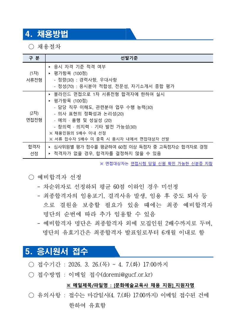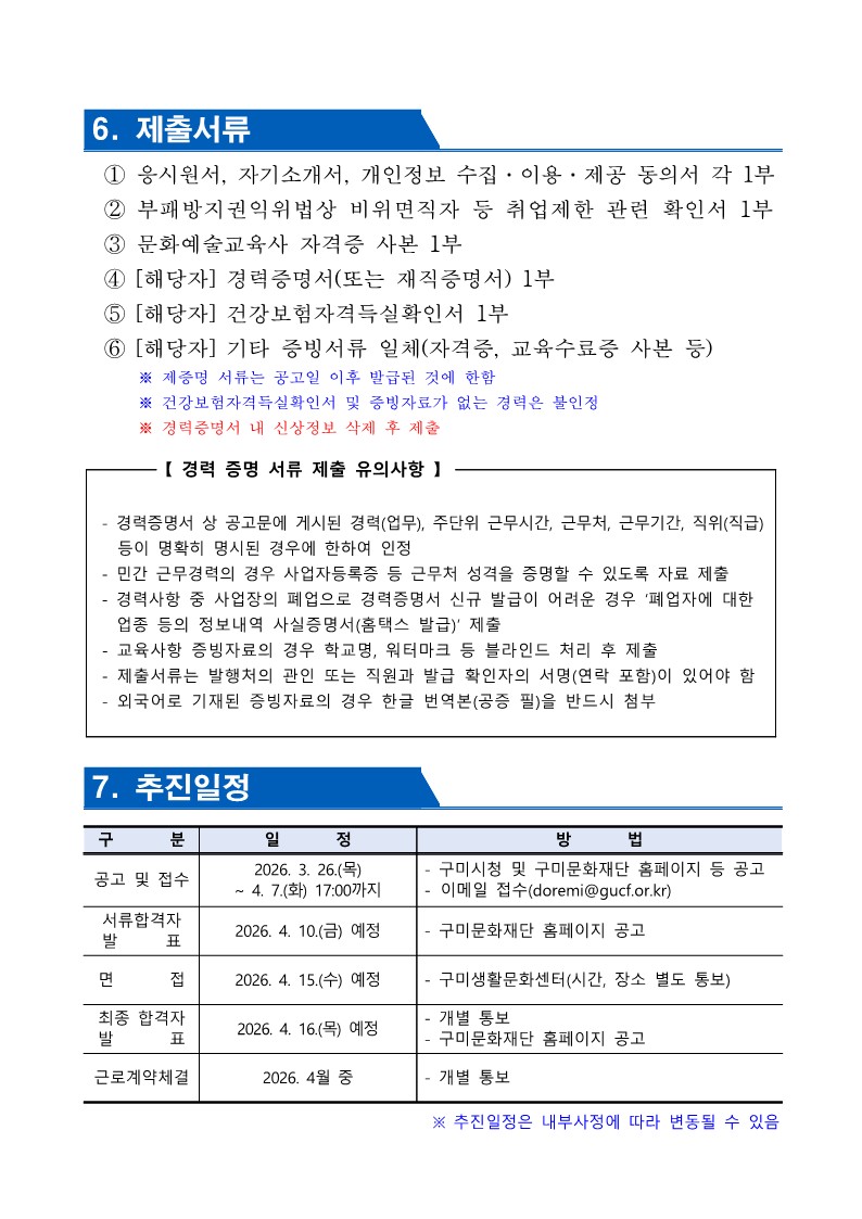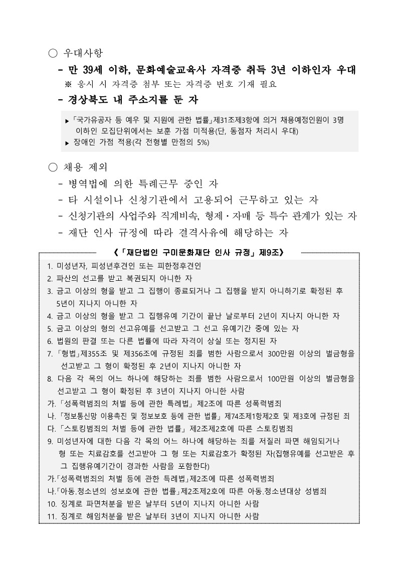 [회원등록공고] (재)구미문화재단 문화예술교육사 채용 재공고(~4.19.)