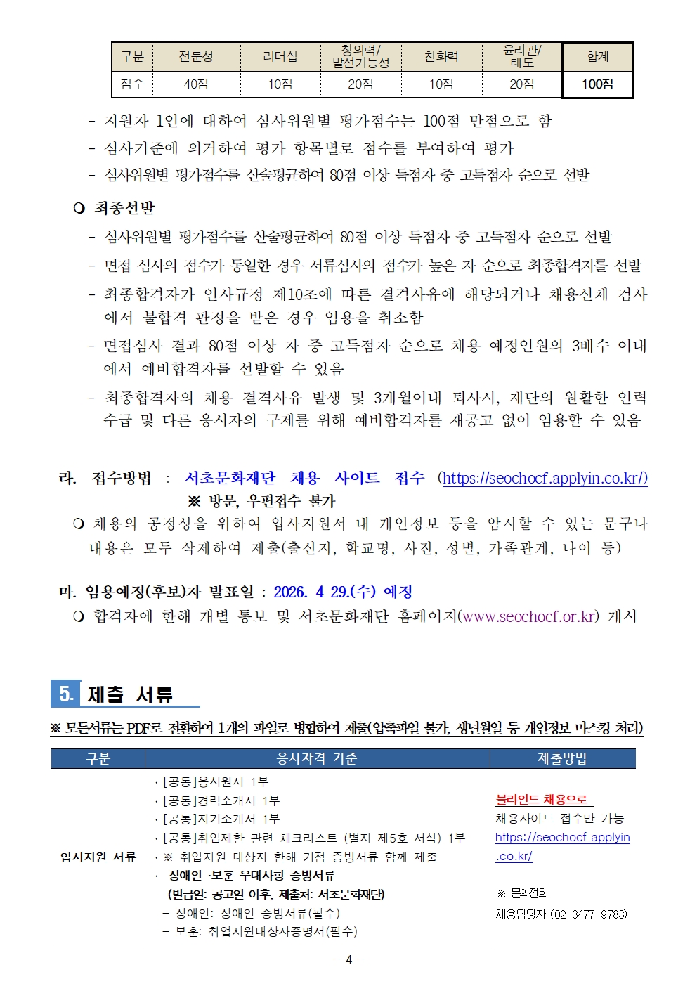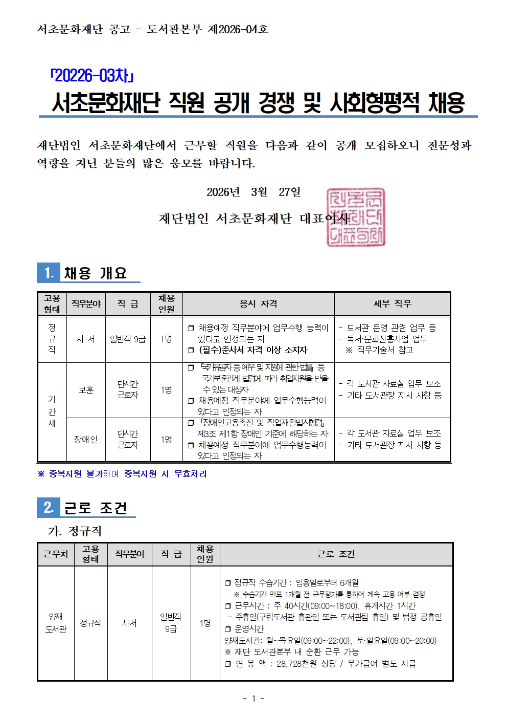 [아트모아] 2026-03차 서초문화재단 직원 채용 공고