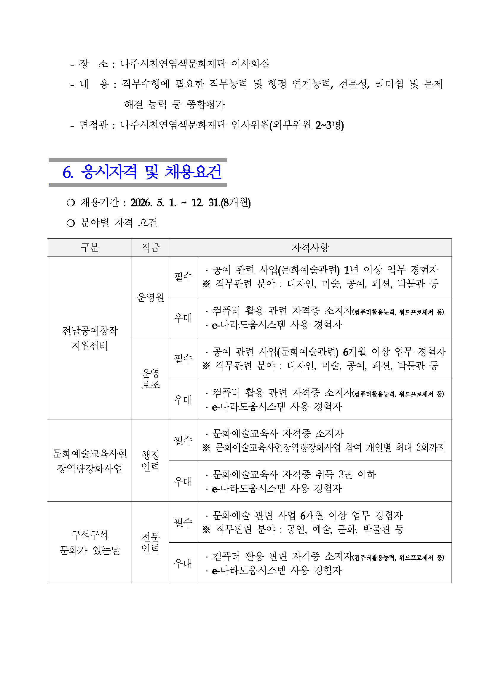[(재)나주시천연염색문화재단] 2026년 (재)나주시천연염색문화재단 기간제근로자 채용 공고