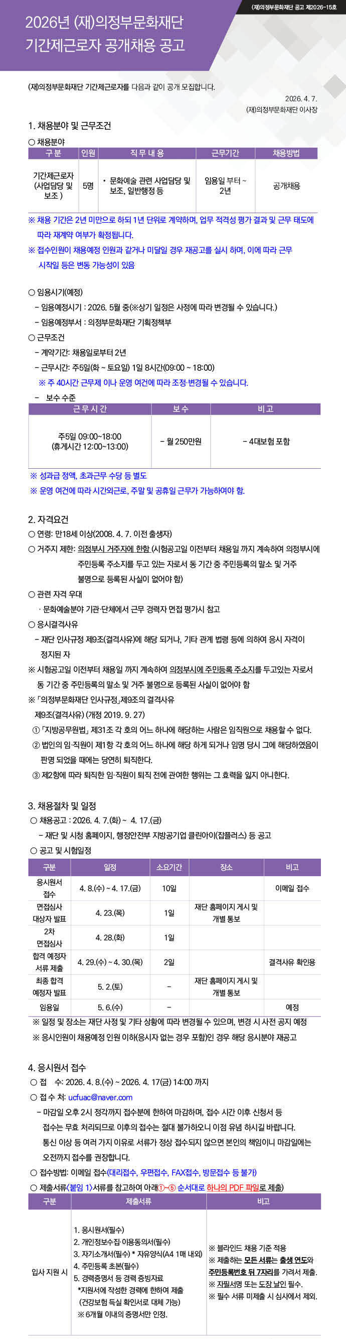 [아트모아] 2026년 의정부문화재단 기간제근로자 공개채용