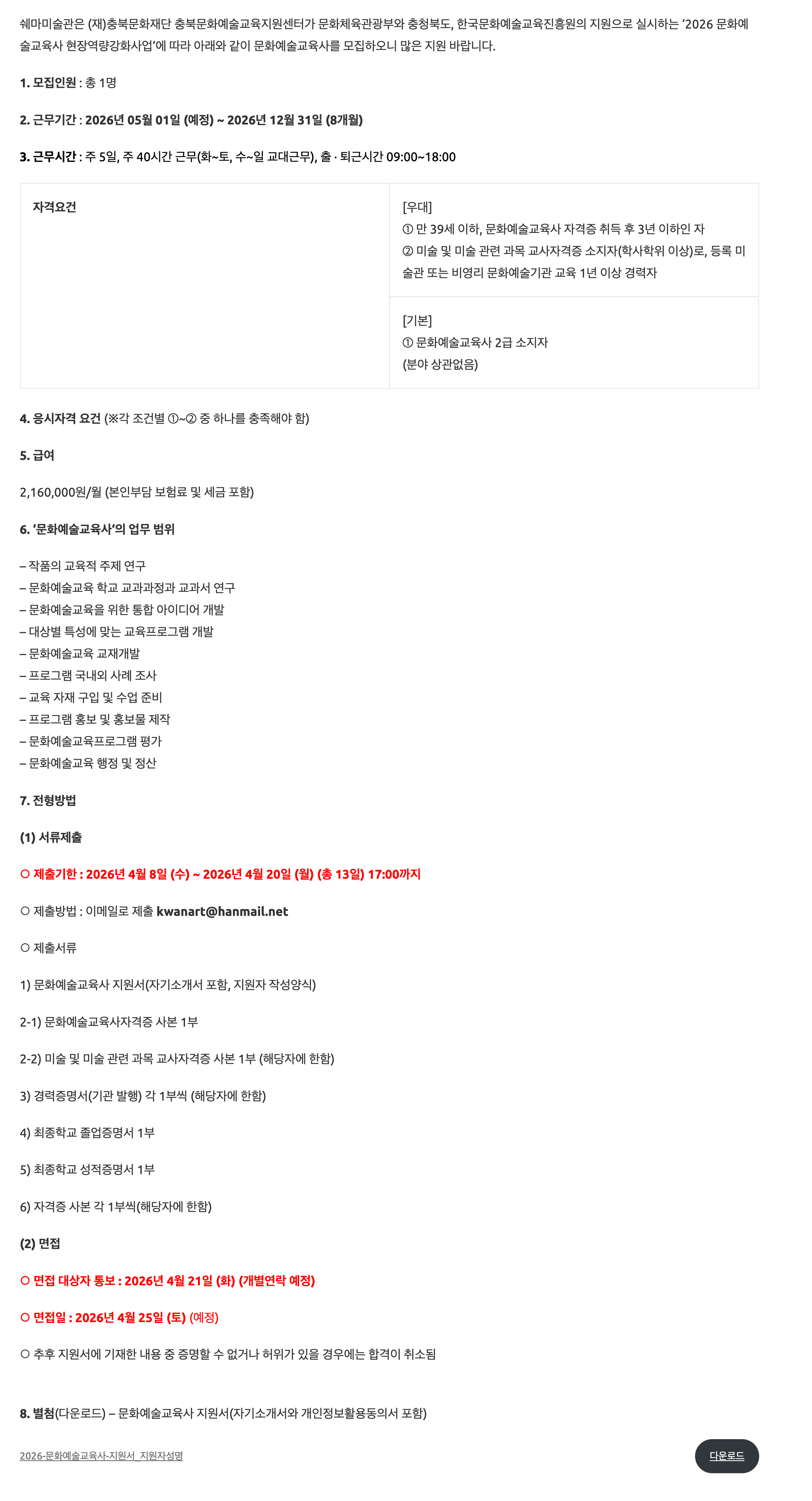 [회원등록공고] 2026 뮤지엄호두 문화예술교육사 채용 공고