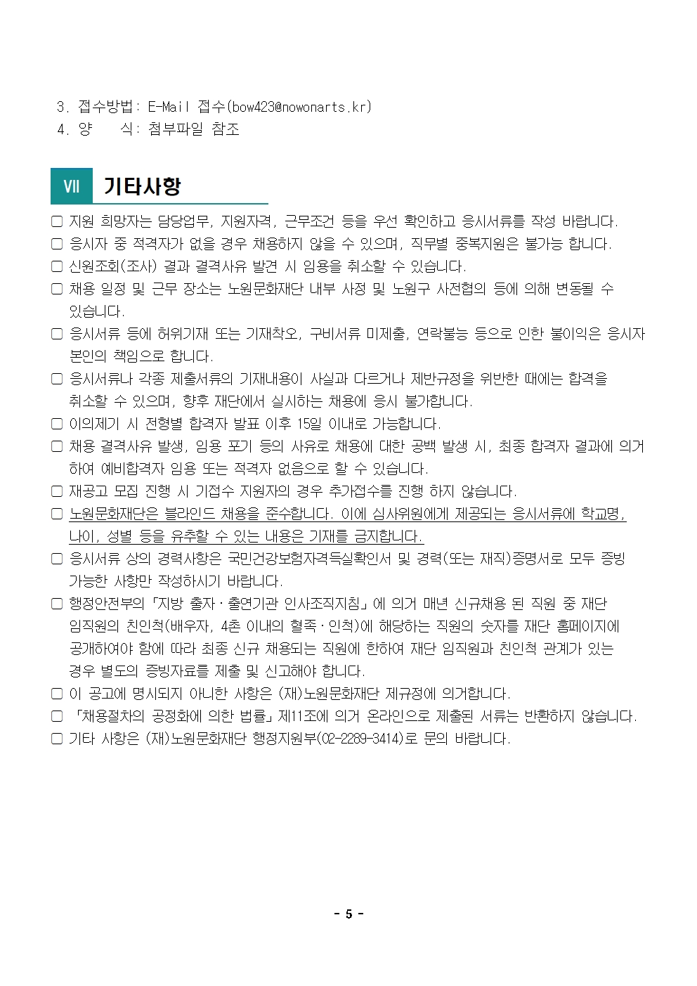 2026년 제5차 직원 채용 공고