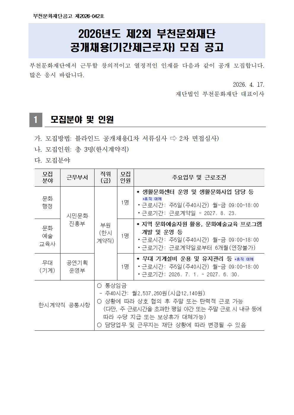 20260417090014_붙임1. 2026 제2회 부천문화재단_기간제근로자_채용공고(안).hwp
