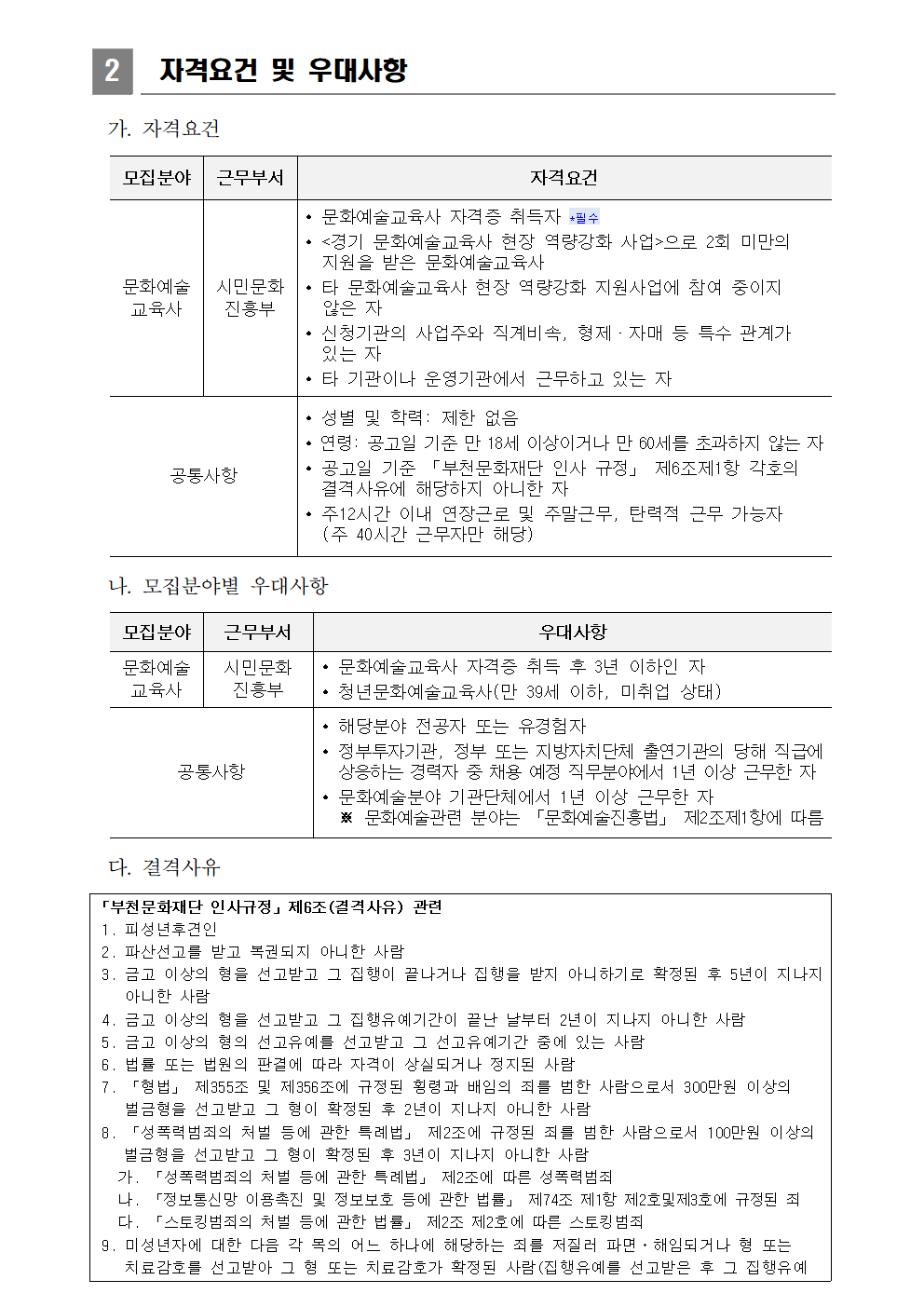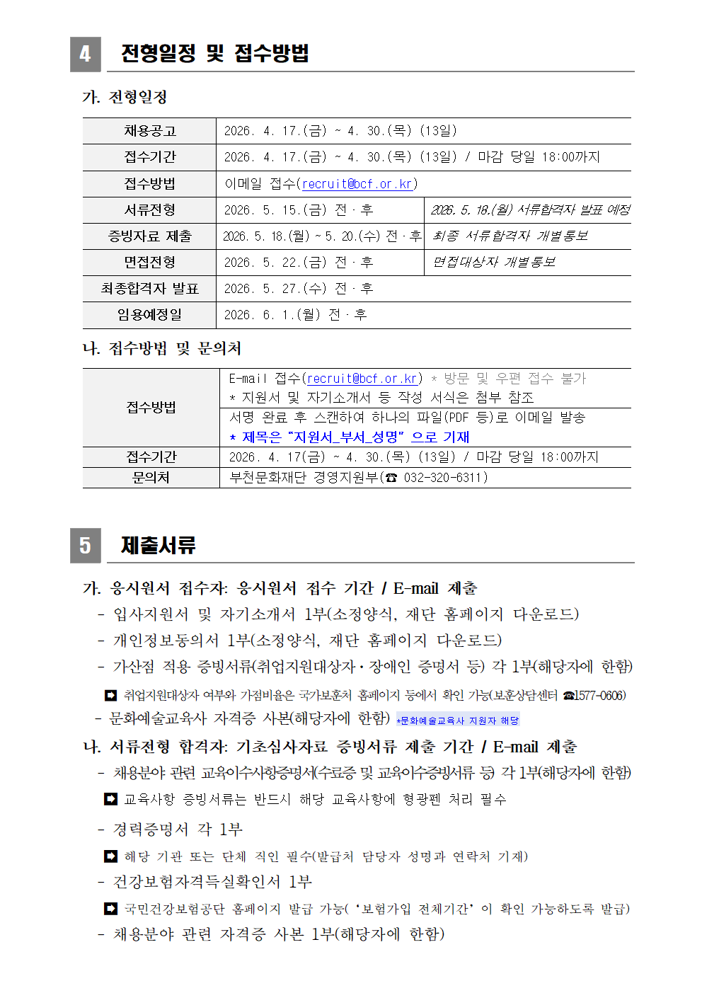 [부천문화재단] 2026년도 제2회 부천문화재단 공개채용(기간제근로자) 모집 공고