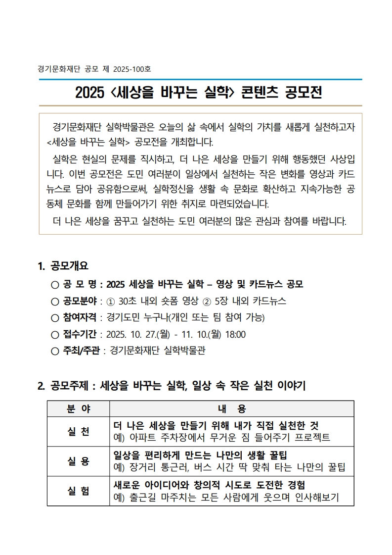 [경기문화재단] 2025 <세상을 바꾸는 실학> 콘텐츠 공모전