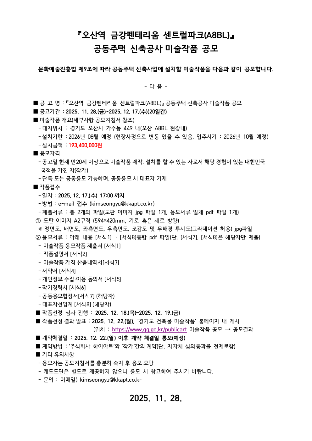20251128111053_2. 오산역 금강펜테리움 센트럴파크(A8BL) 미술작품 공모지침서.hwp