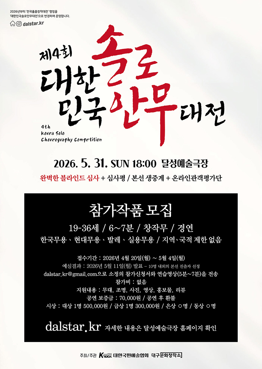 - dalstar.kr@gmail.com으로 소정의 참가신청서와 연습영상(5분~7분)을 전송