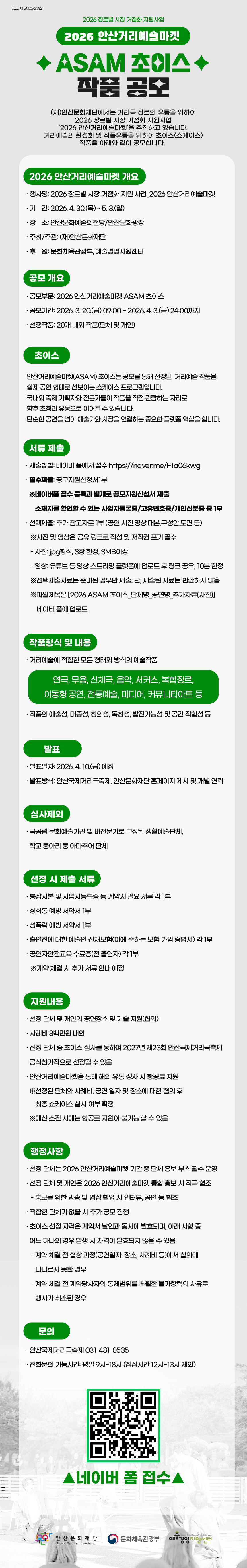 [안산거리예술마켓] 2026 안산거리예술마켓_ASAM 초이스 작품 공모