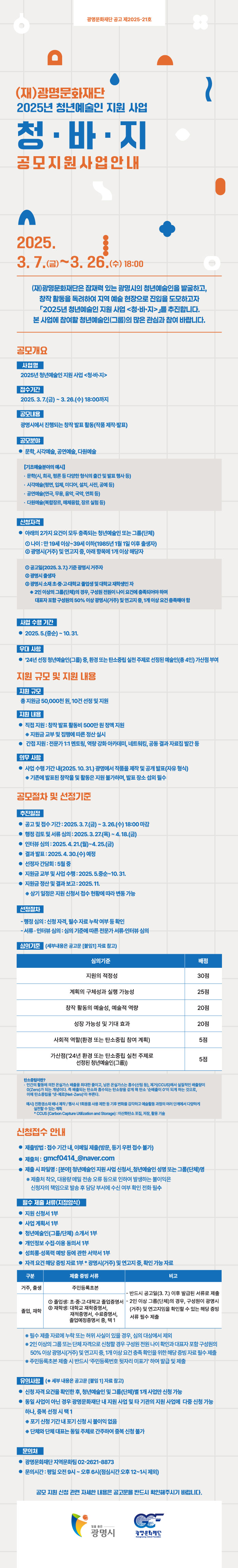 [광명문화재단] [광명문화재단] 2025년 청년예술인 지원 사업 공모 안내