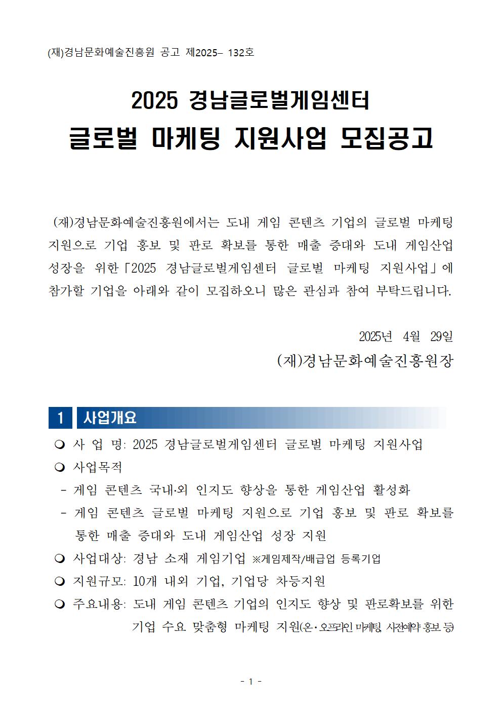 [경남문화예술진흥원] 2025년 경남글로벌게임센터 글로벌 마케팅 지원사업 모집 공고