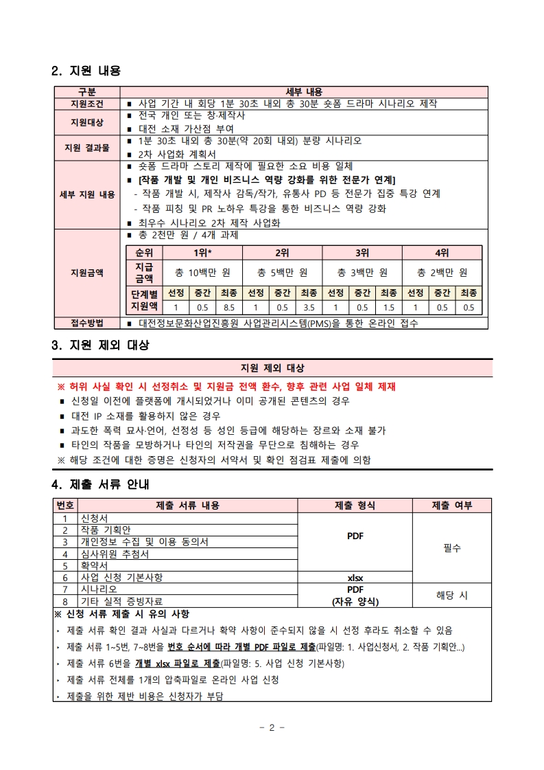 [대전정보문화산업진흥원] 2025년 플랫폼 콘텐츠 제작 지원사업 - 기획개발지원 모집공고