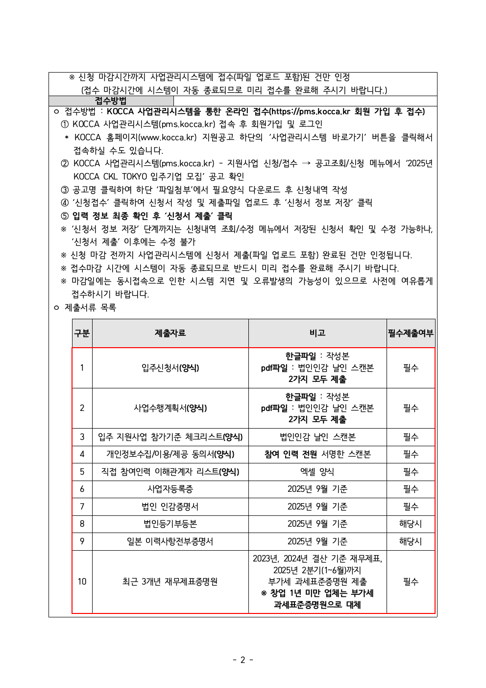 20250917061014_2-1. (양식) 2025년 KOCCA CKL TOKYO 입주기업 모집.hwp