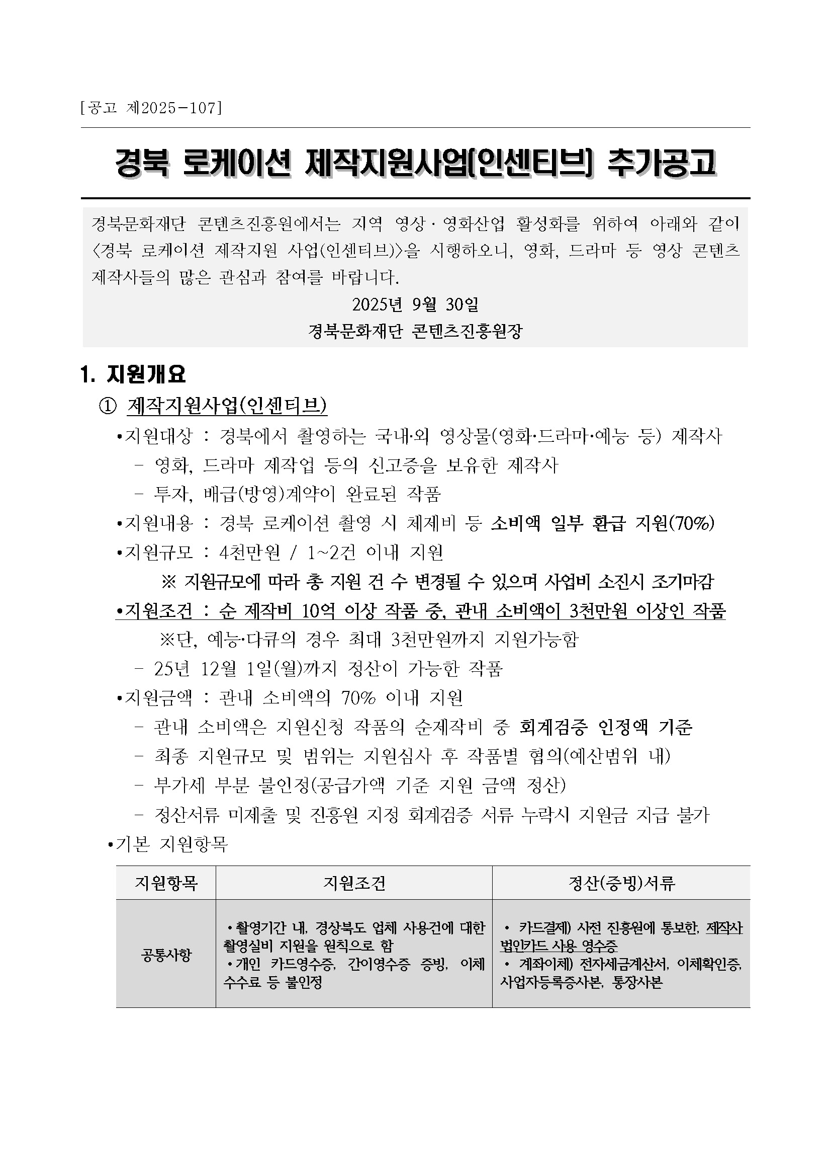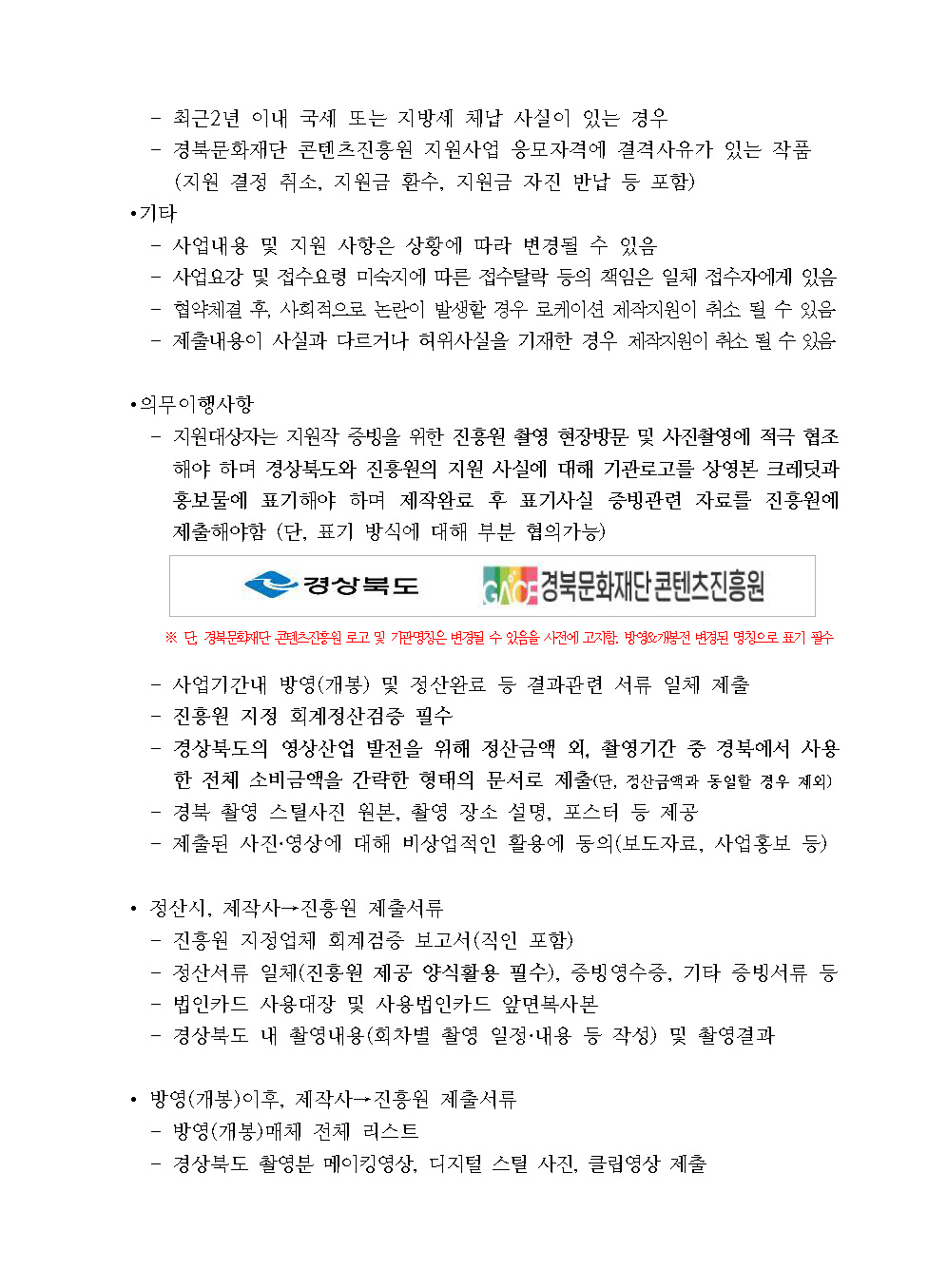 [경북문화재단] 경북 로케이션 제작지원사업 (인센티브) 추가공고