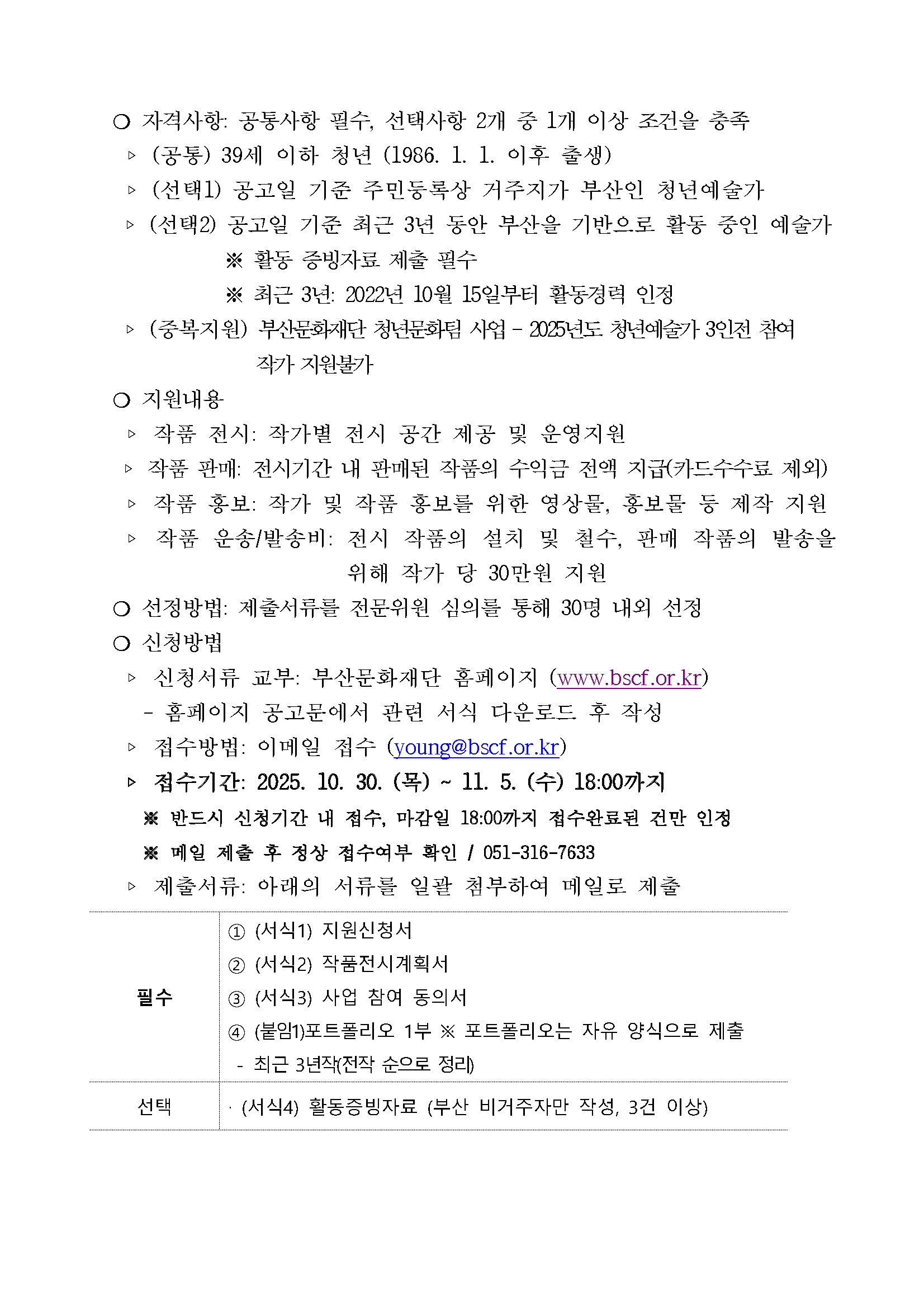 [부산문화재단] [공고]2025년도 청년 아트페어
