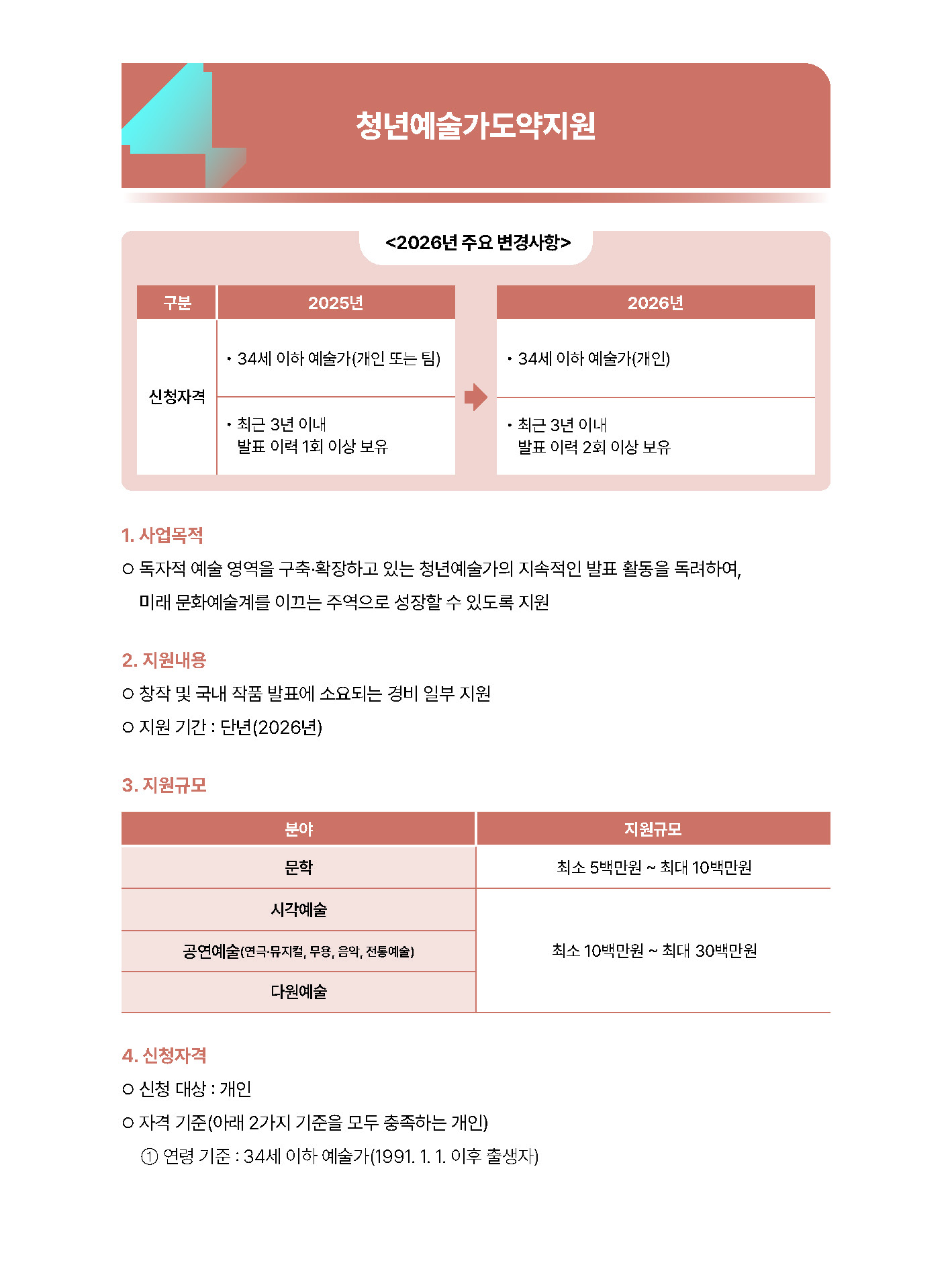 [한국문화예술위원회] 2026년 청년예술가도약지원