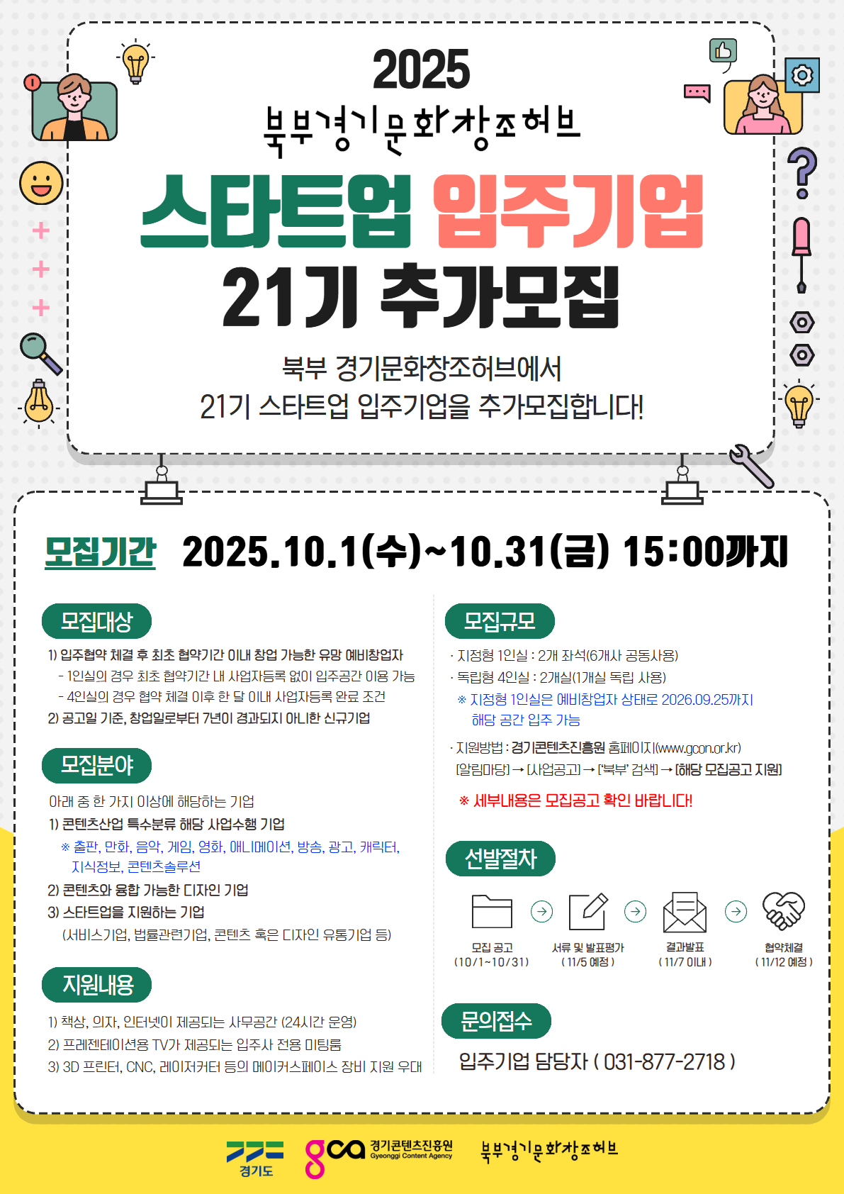 [경기콘텐츠진흥원] 2025 북부 경기문화창조허브 스타트업 입주사 21기 추가모집 공고
