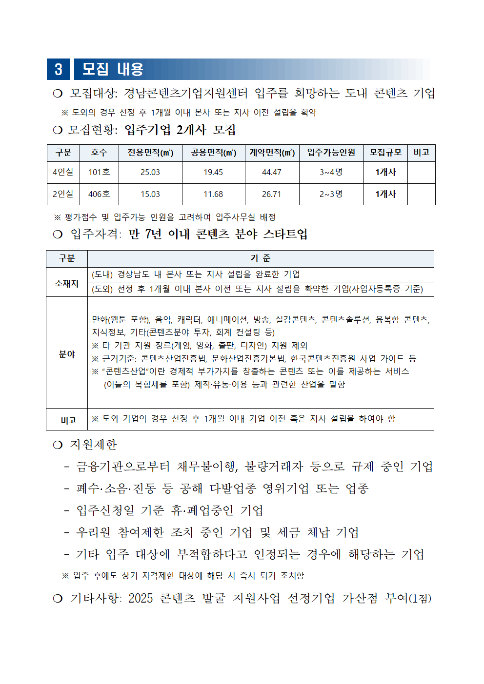 [경남문화예술진흥원] 2025 경남콘텐츠기업지원센터 입주기업 모집(2차) 연장 공고