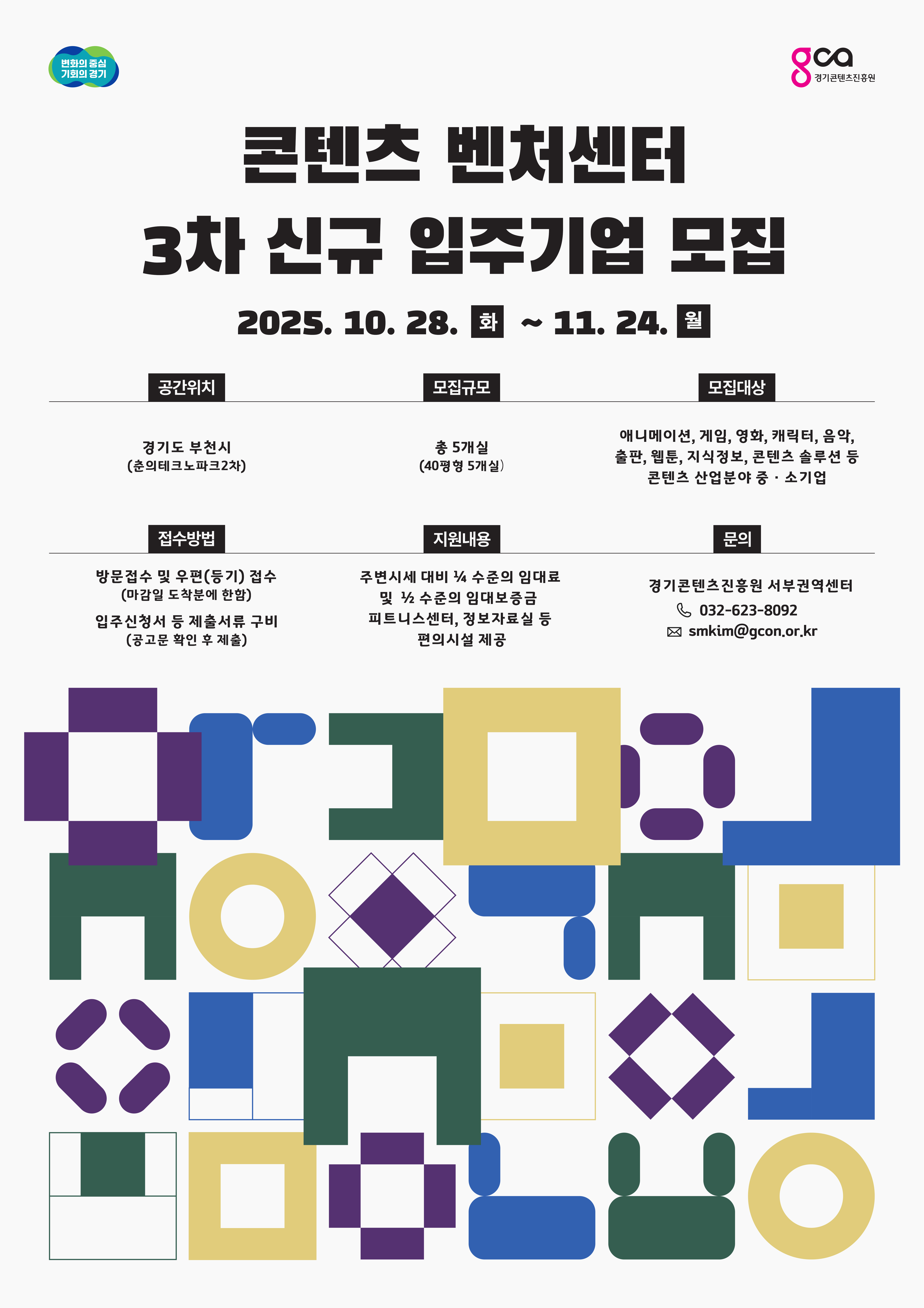 [경기콘텐츠진흥원] 2025년 콘텐츠 벤처센터 3차 신규 입주기업 모집