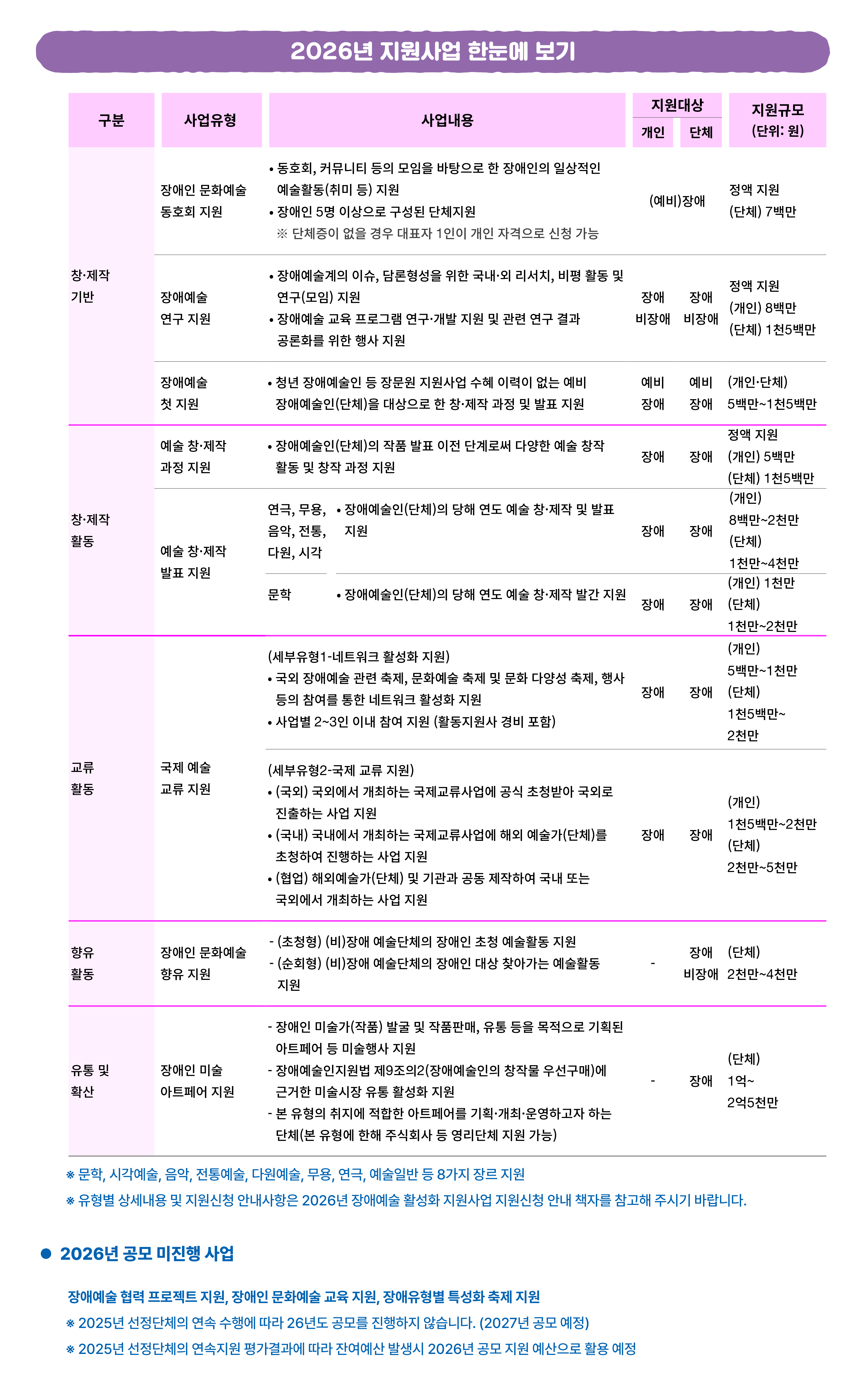 [한국장애인문화예술원] 2026년 장애예술 활성화 지원사업 지원신청 안내(~11. 28.(금), 18시 마감)