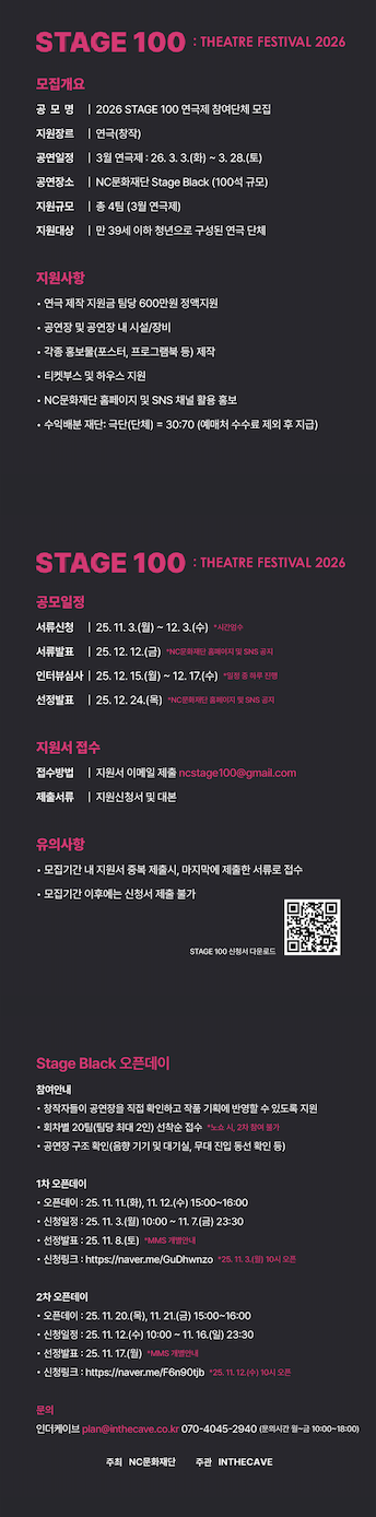 [NC문화재단] 2026 STAGE 100 연극제 참여단체 모집 안내