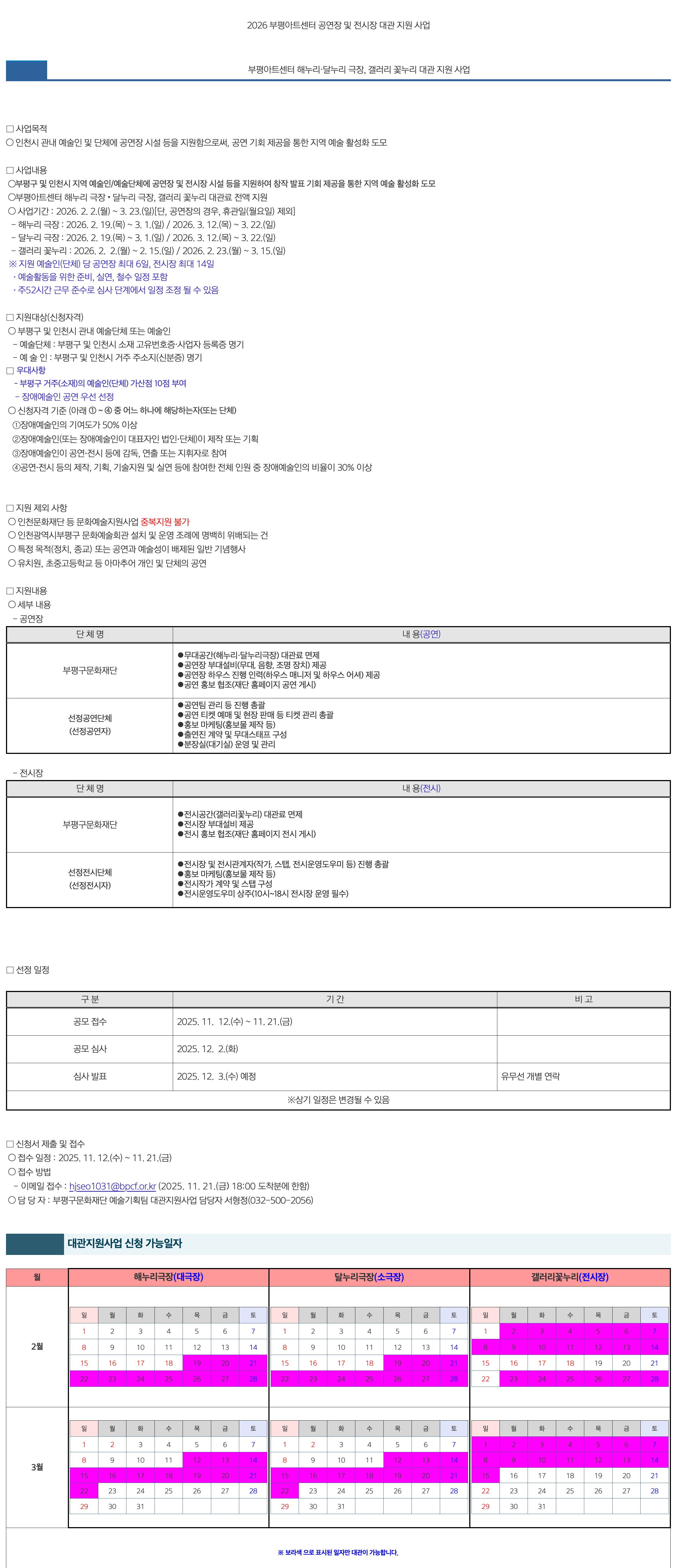 [부평구문화재단] 2026 부평아트센터 공연장 및 전시장 대관 지원 사업 공모