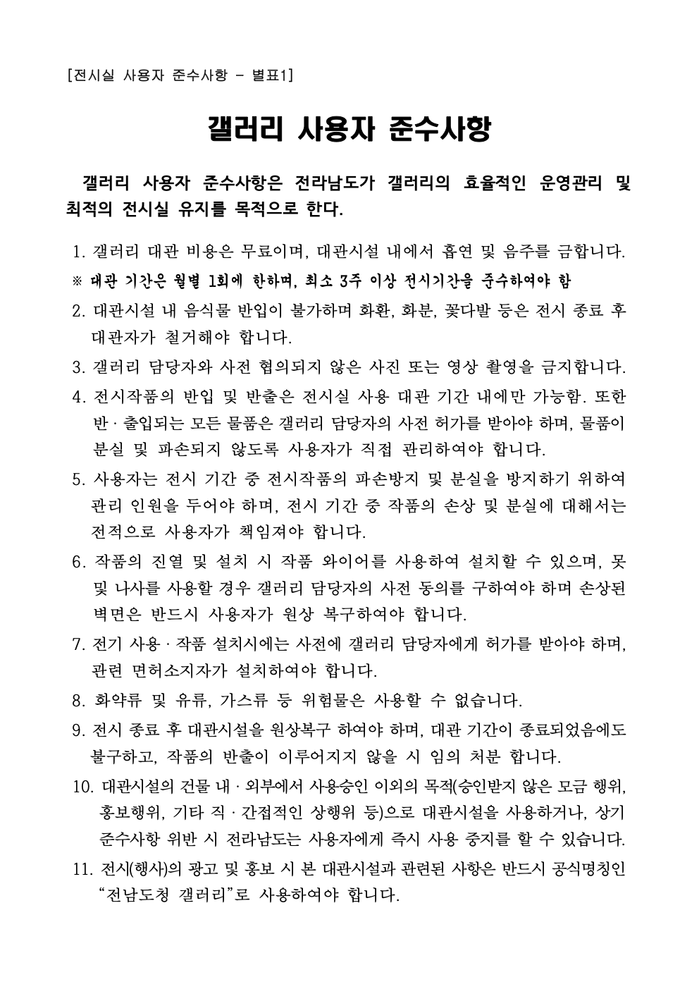[아트누리] 2025년 전라남도청 갤러리 대관 공모