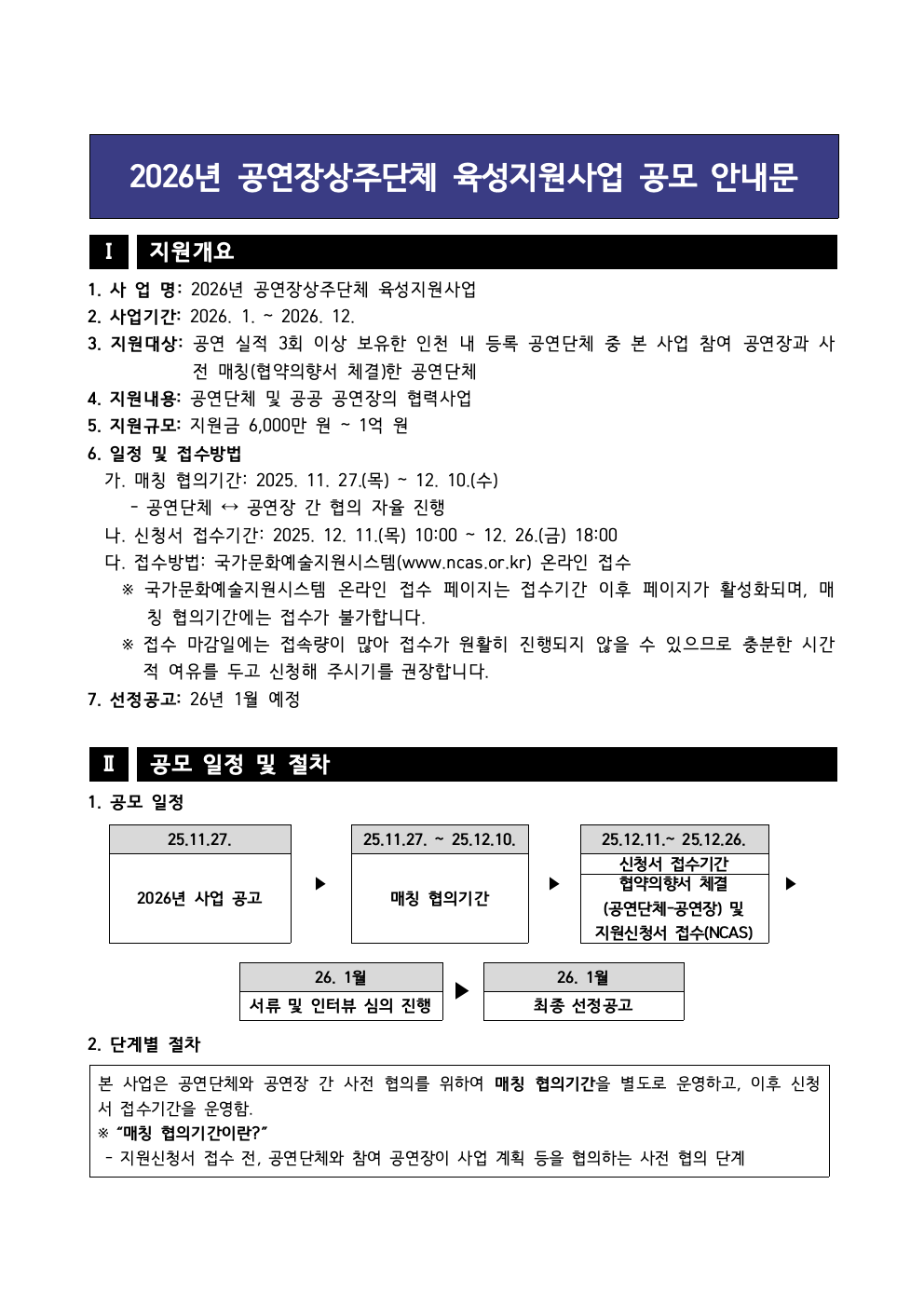 [인천문화재단] 2026 공연장상주단체 육성지원사업 공모