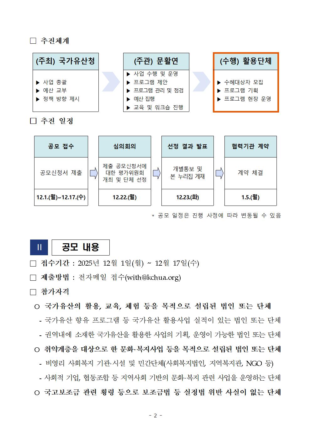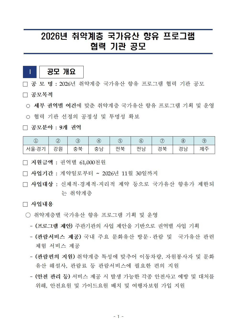[국가유산청] 2026년 취약계층 국가유산 향유 프로그램 향유 프로그램 협력기관 공모