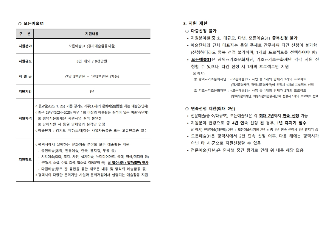2026 경기예술활동지원 <모든예술31 하남> 사업 공고 새글