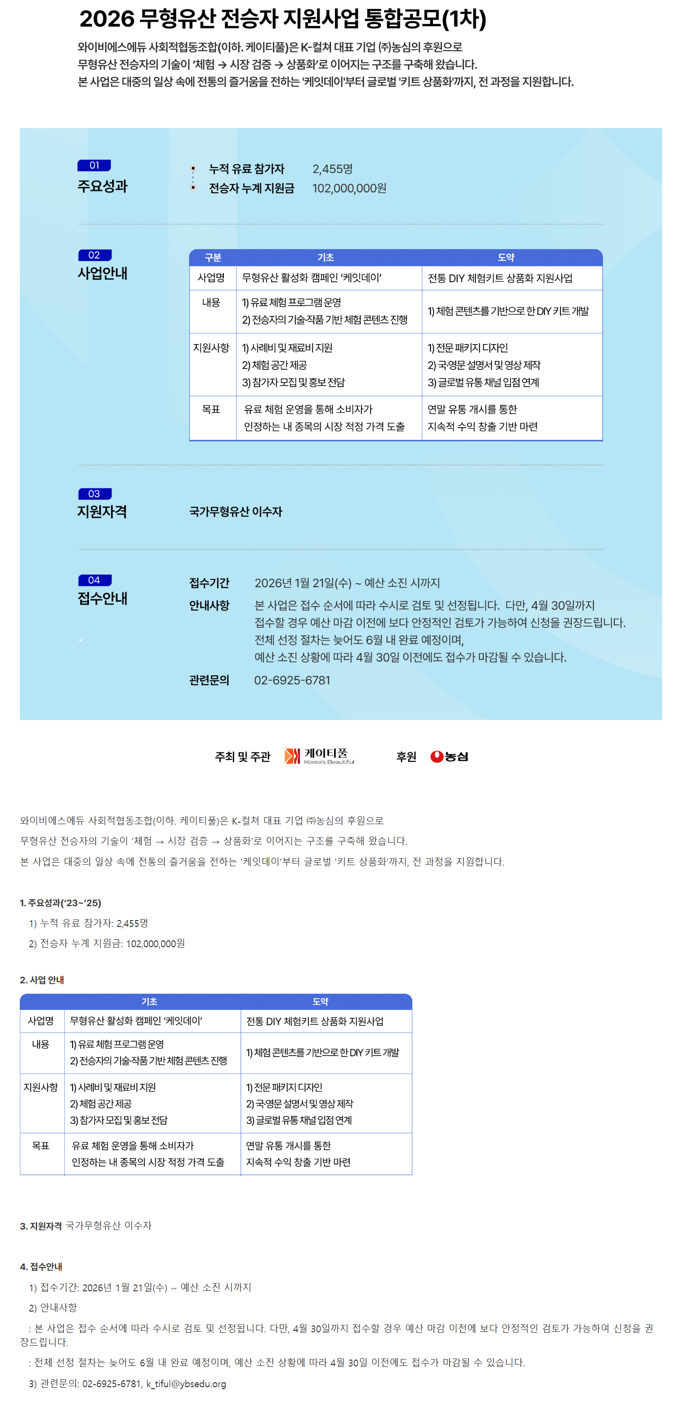 [케이티풀] [국가유산체험센터] 2026 무형유산 전승자 지원사업 통합공모(1차)