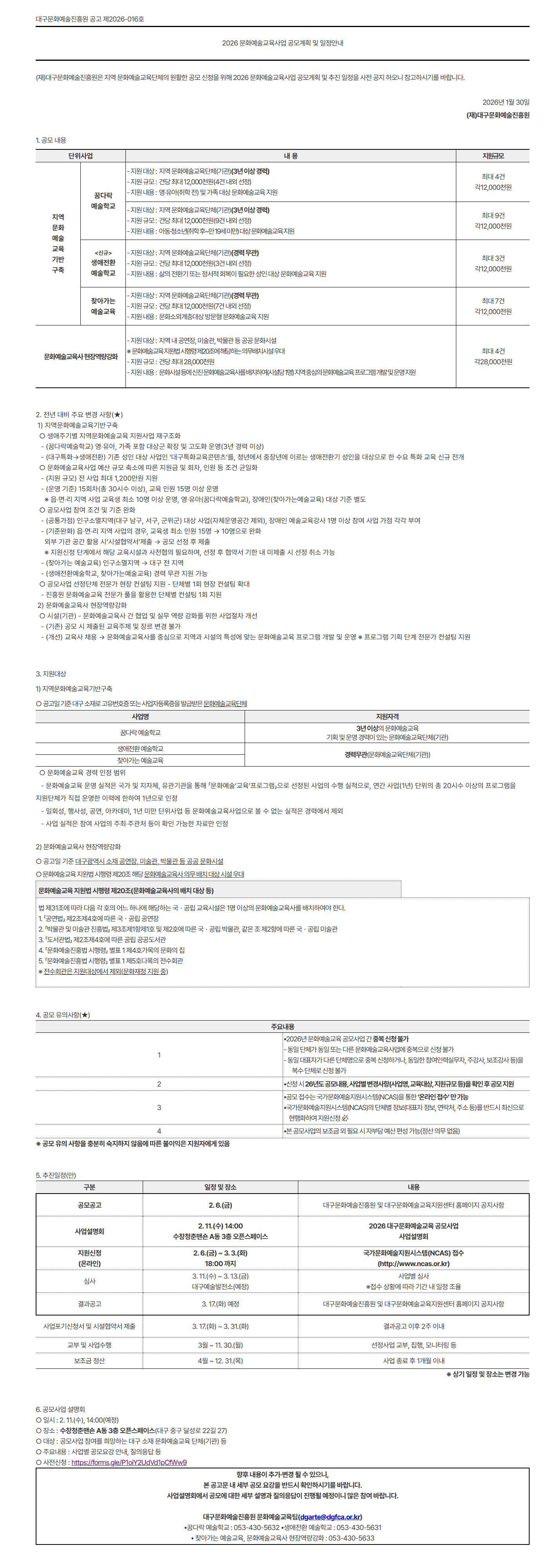 [대구문화예술진흥원] 2026 문화예술교육사업 공모계획 및 일정안내