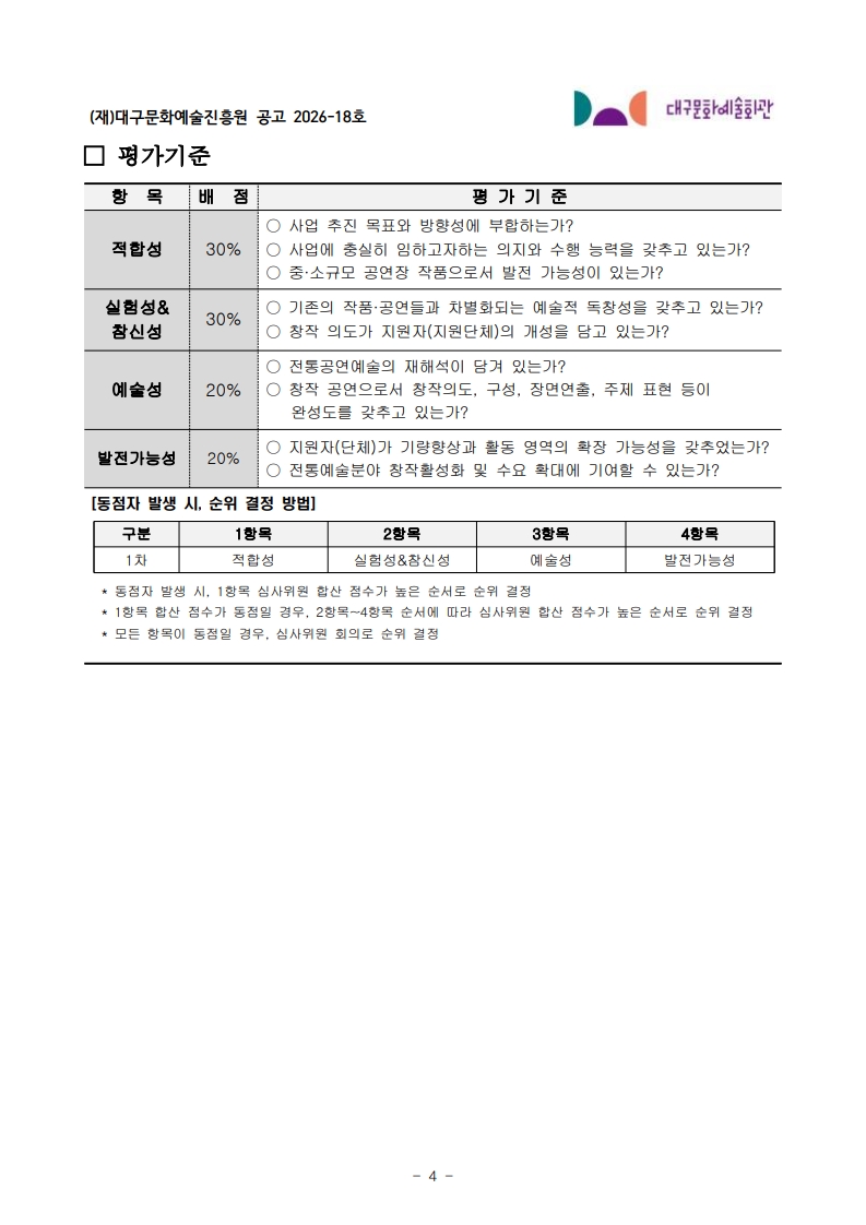 2026년 대구문화예술진흥원 K-Art 청년창작자 지원사업 공모