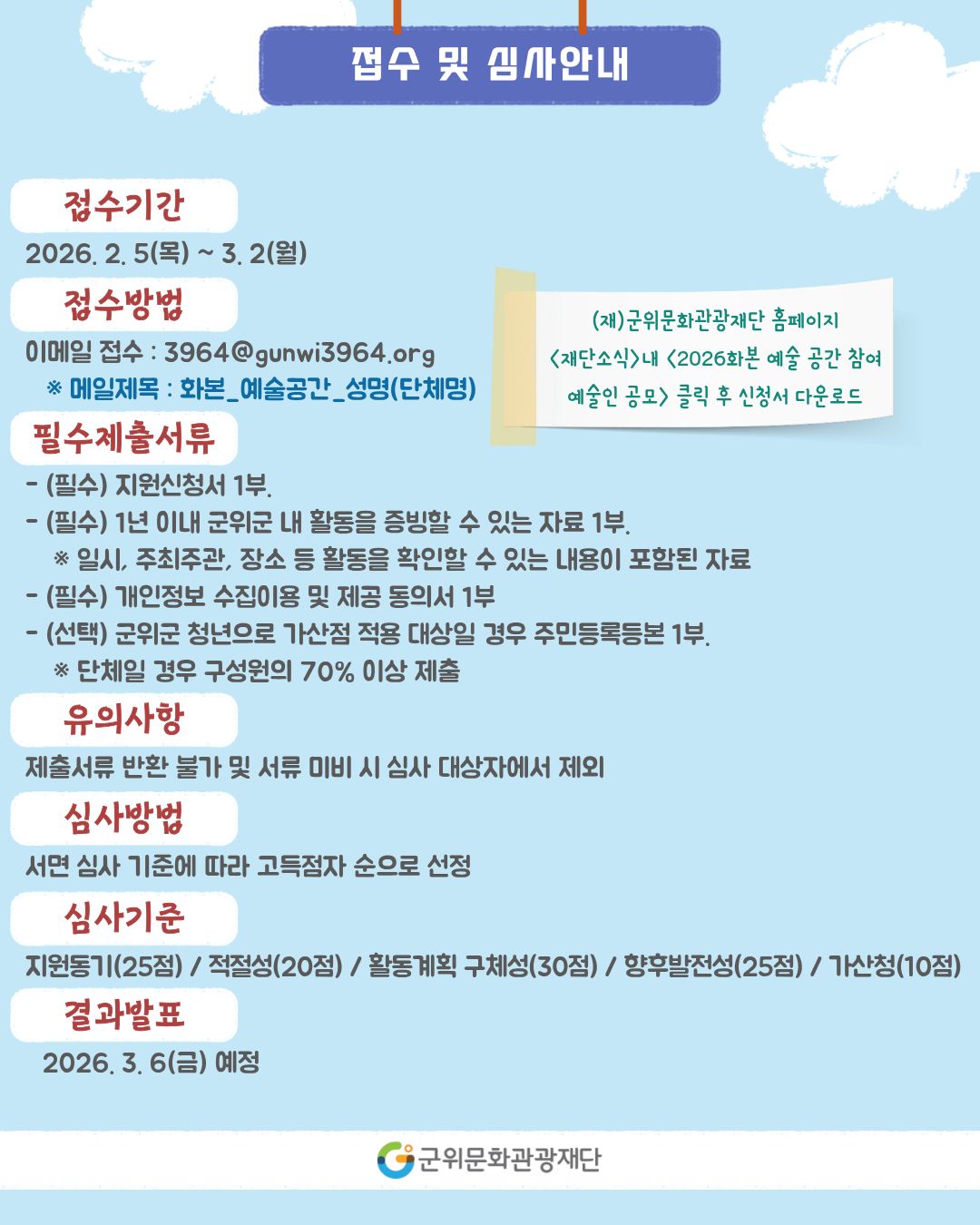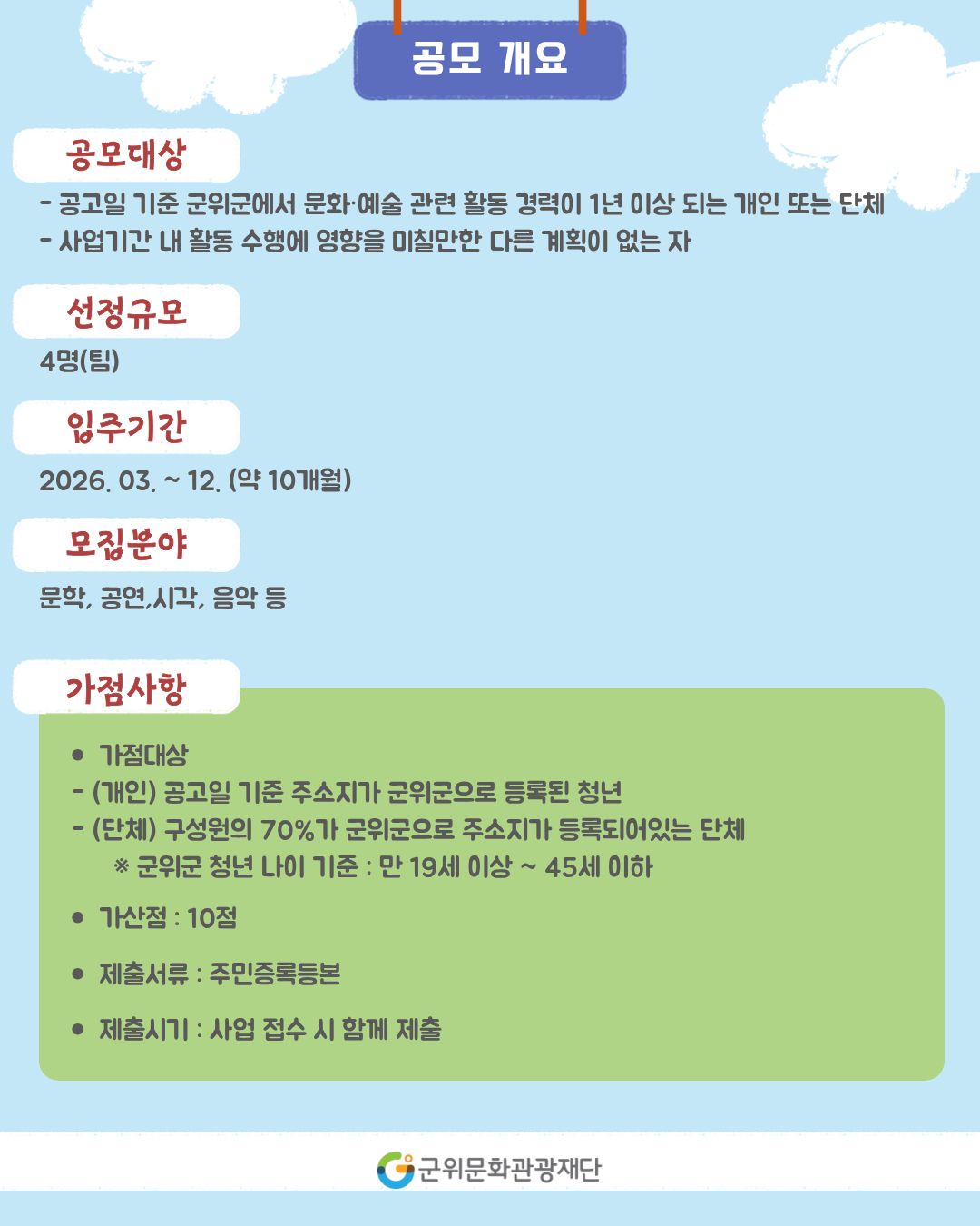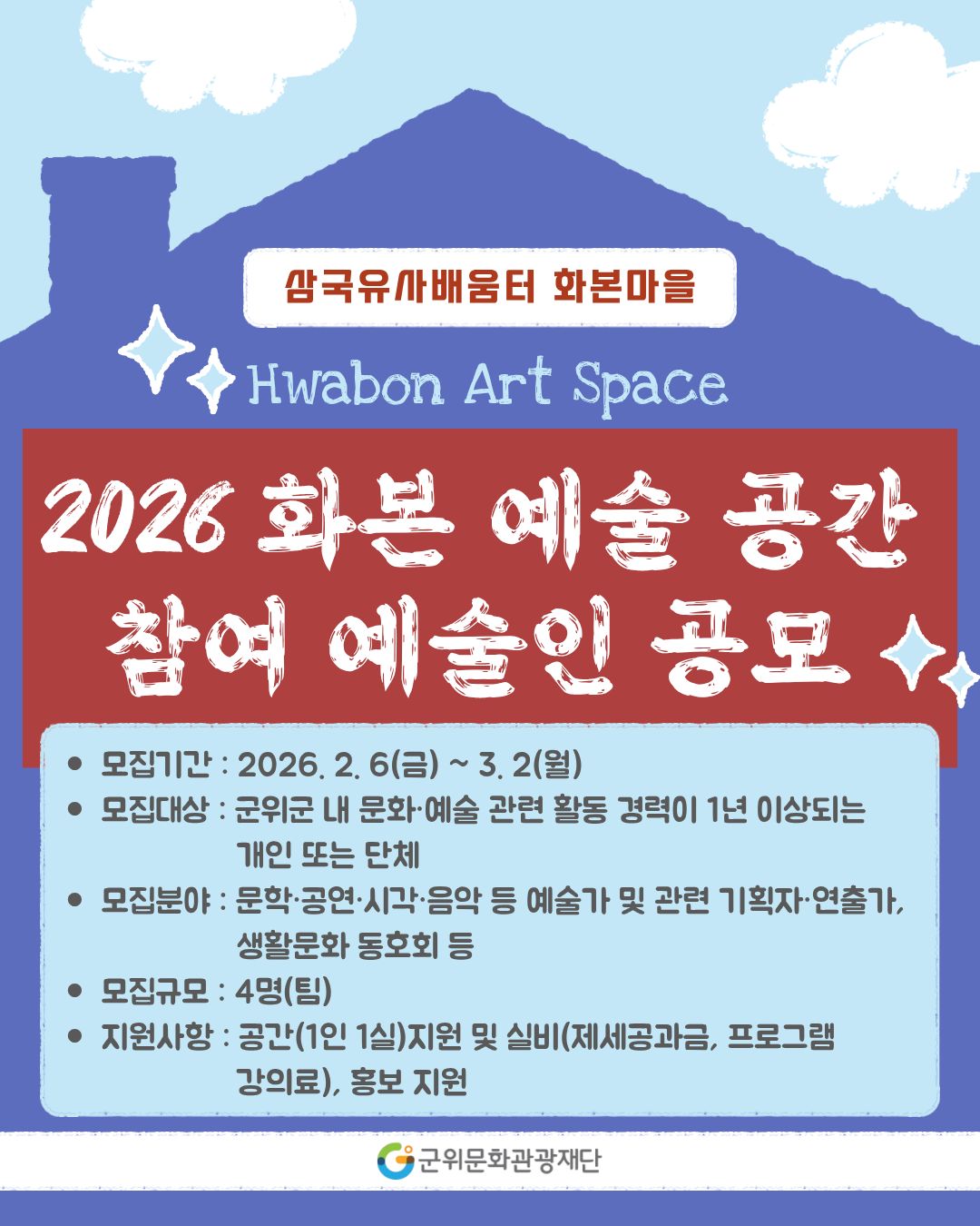 [군위문화관광재단] 2026년 화본 예술 공간 참여 예술인 공모