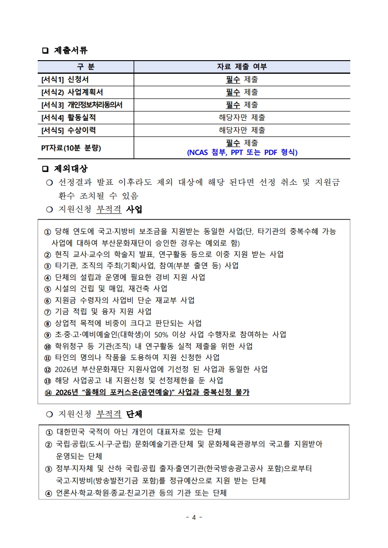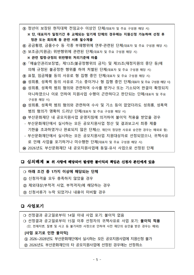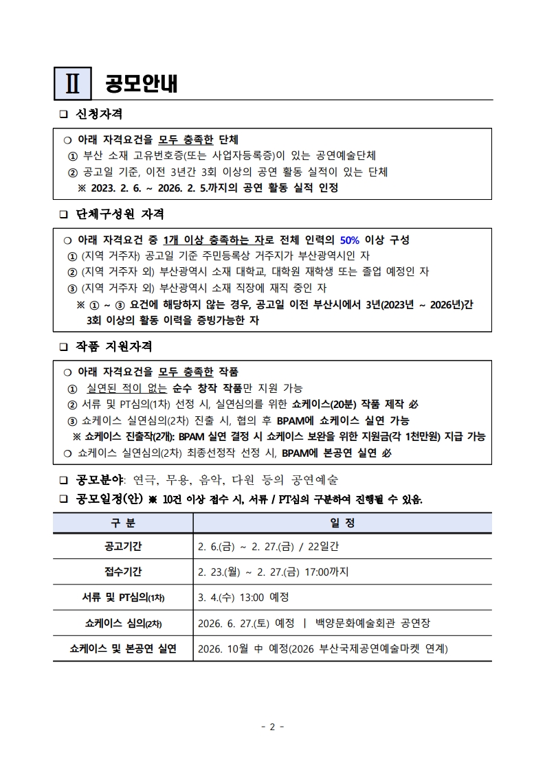 2026년도 부산문화예술지원 3.0 [2차 통합 공모] - 부산문화예술지원사업, 청년문화육성지원사업