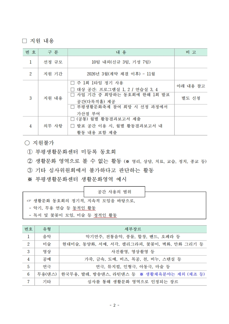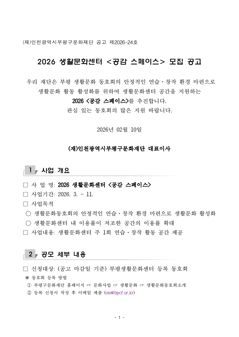 [부평구문화재단] 2026 생활문화센터 모집 공고