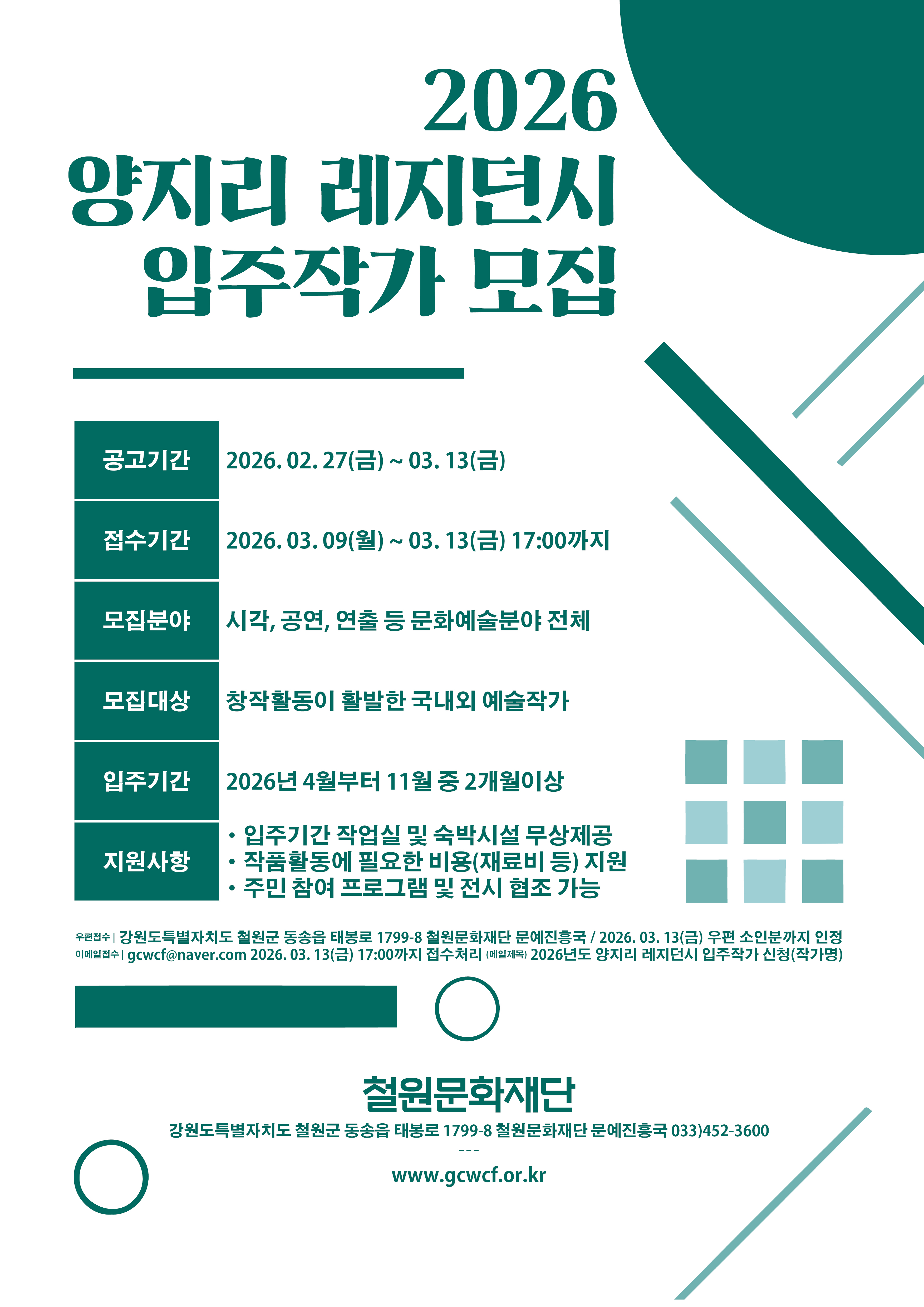 [철원문화재단] 2026년도 양지리 레지던시 입주작가 모집 공고