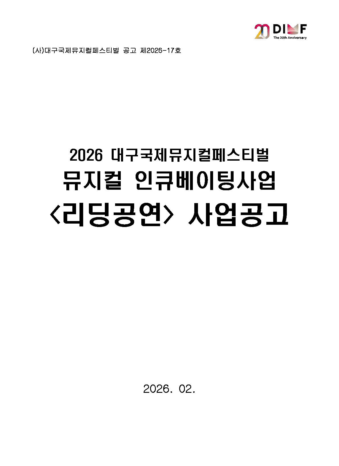 [(사)대구국제뮤지컬페스티벌] 2026 DIMF 뮤지컬 인큐베이팅사업 리딩공연 공고