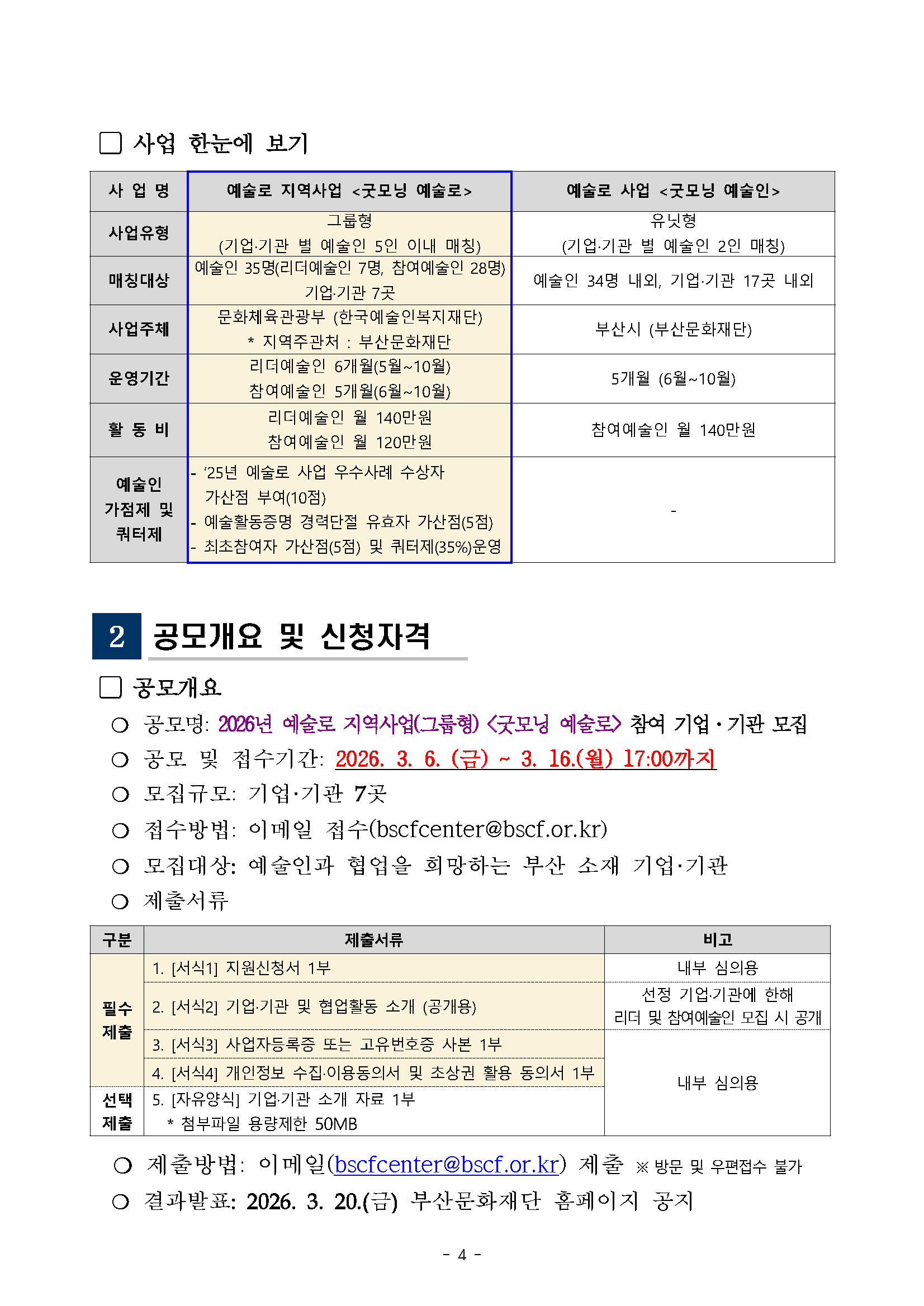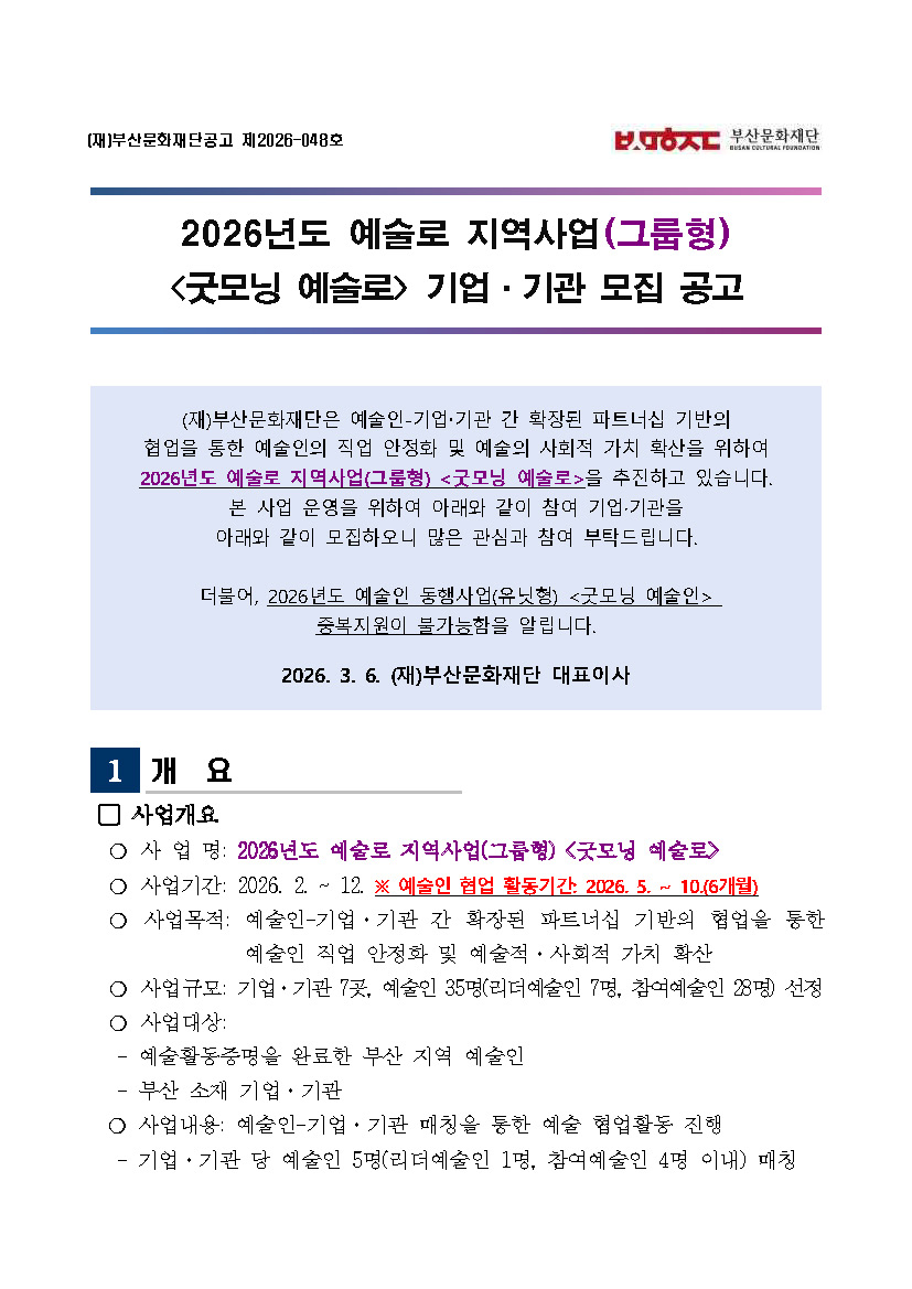 [부산문화재단] 2026 예술로 지역사업(그룹형) <굿모닝 예술로> 참여 기업·기관 모집 (前예술인파견지원사업-협력형)
