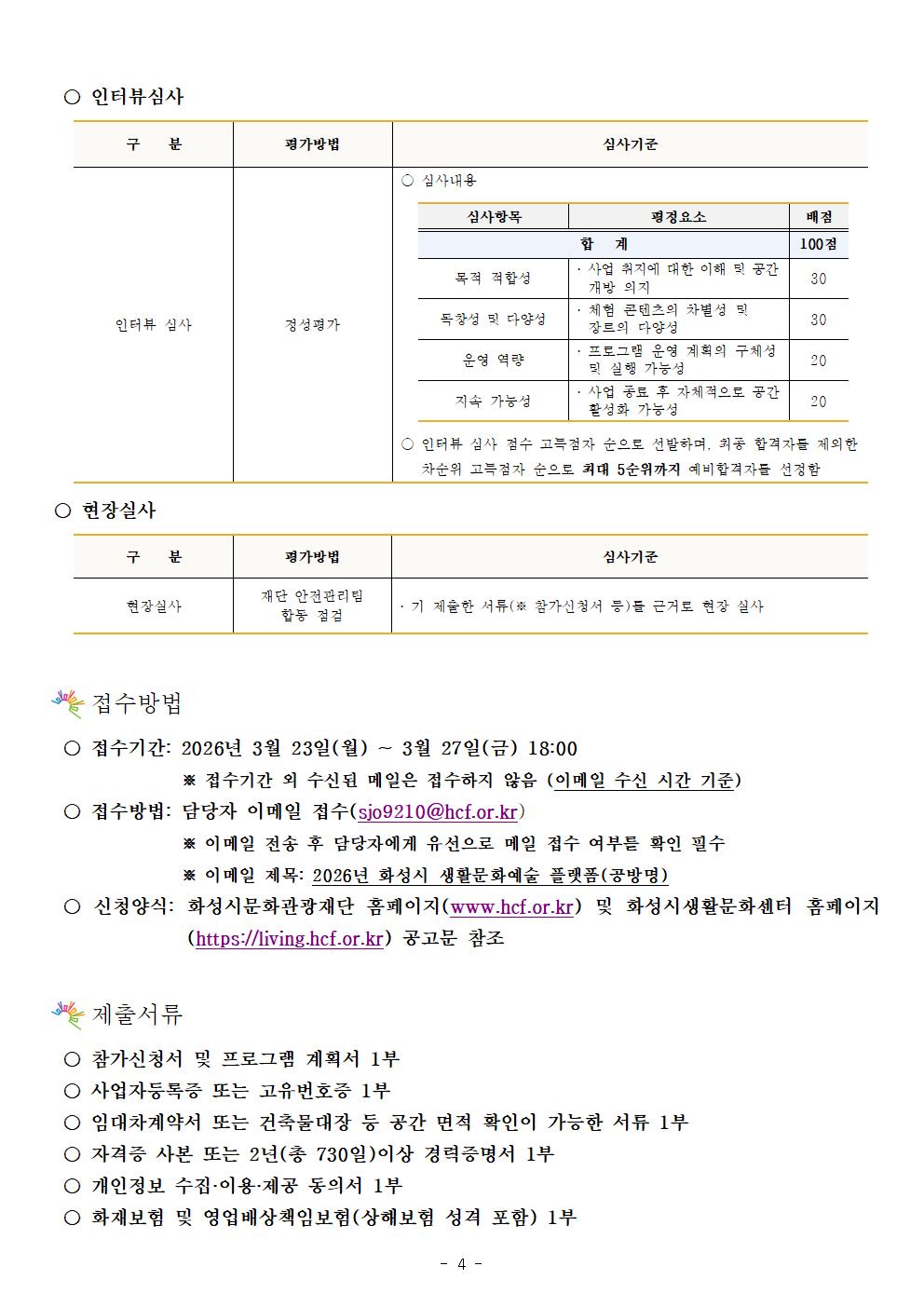 [화성시문화재단] 2026년 생활문화예술 플랫폼 모집 공고