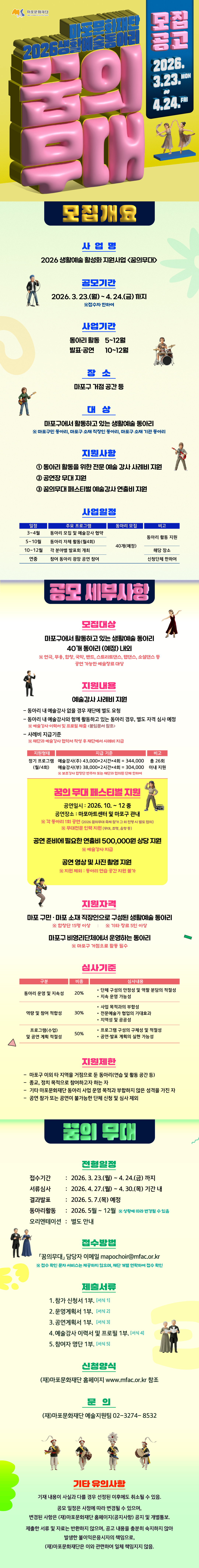 2026 지역문화예술 공모사업 참여 모집 공고(2/23~3/15)