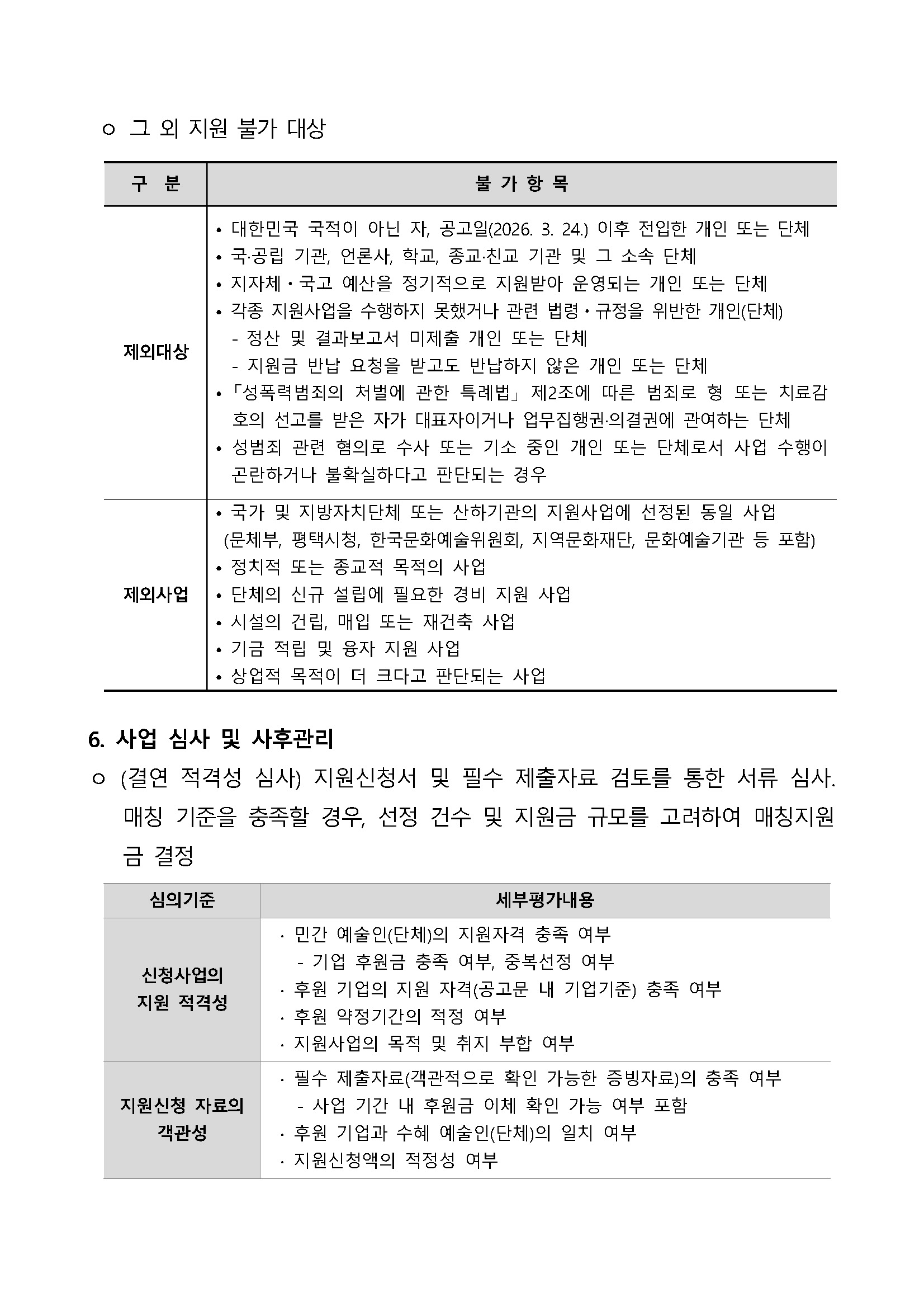 2026년 문화예술 공모지원사업 포·도·당 공모