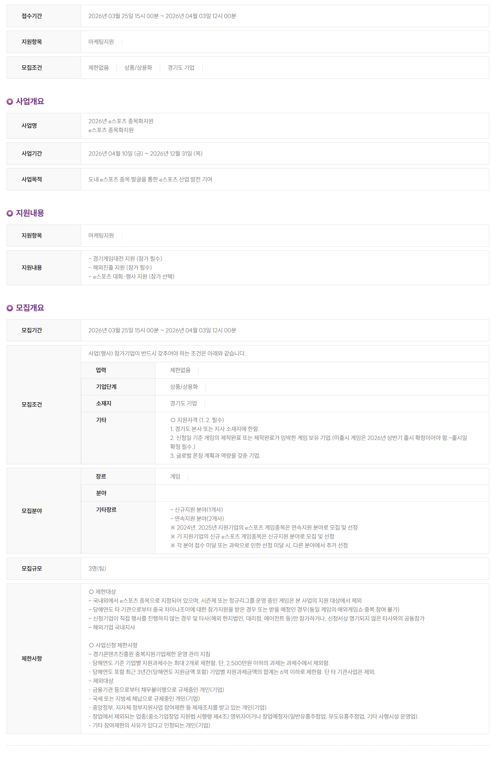 [경기콘텐츠진흥원] 2026년 e스포츠 종목화지원 참가기업 연장 모집공고